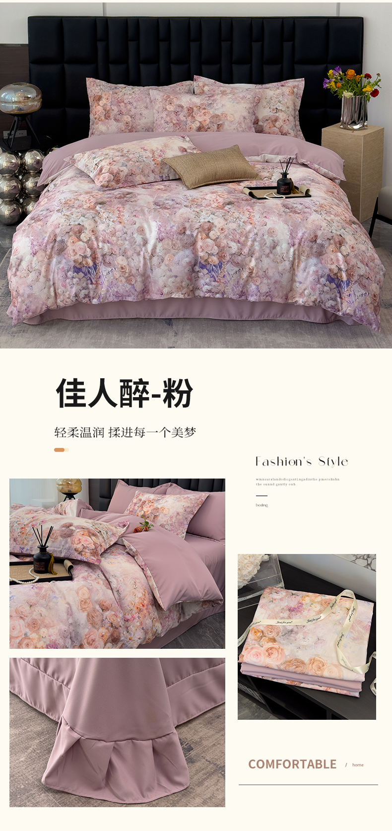 商品名称:竹合 2025新款数码印花轻奢凉感四件套 佳人醉-粉