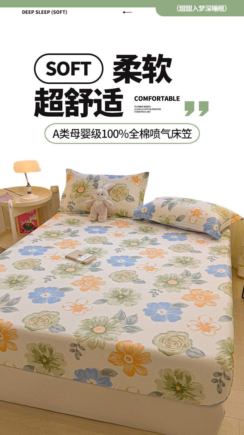 • 91家纺网 家纺一手货源 找家纺 拾物记 2025新款A类无荧光全喷气全棉12868单床笠 南笙梦境