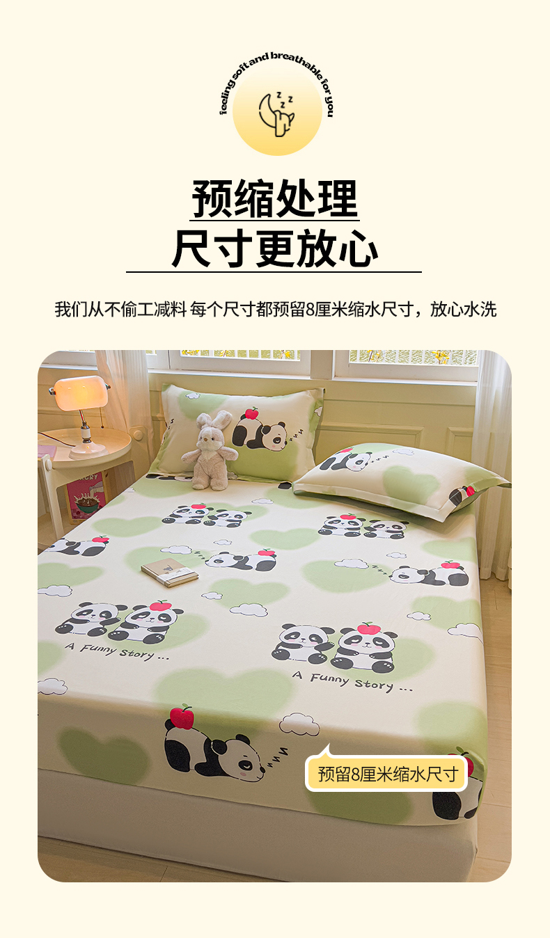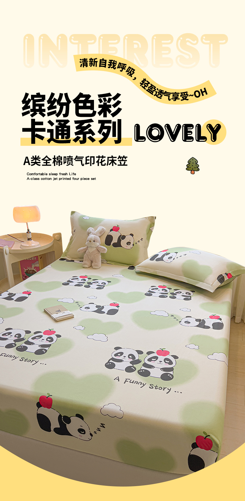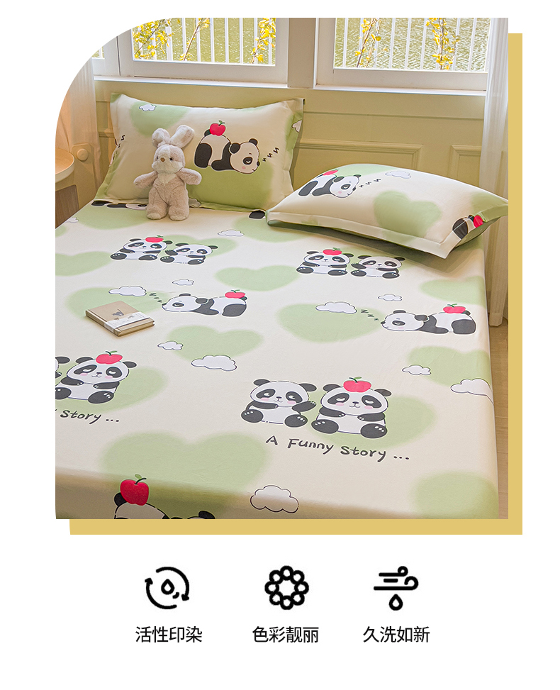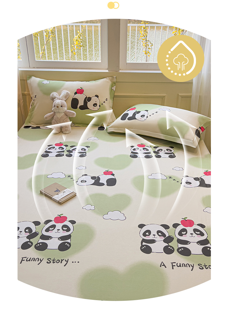 拾物记 2025新款A类无荧光全喷气全棉12868单床笠 熊猫趣事