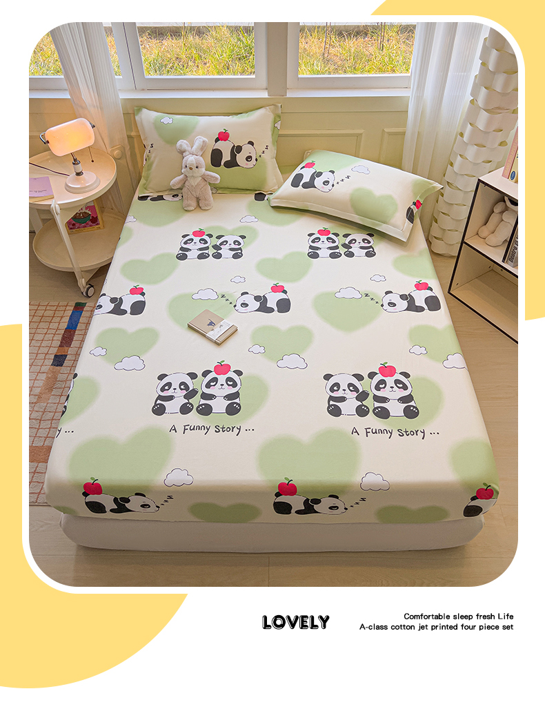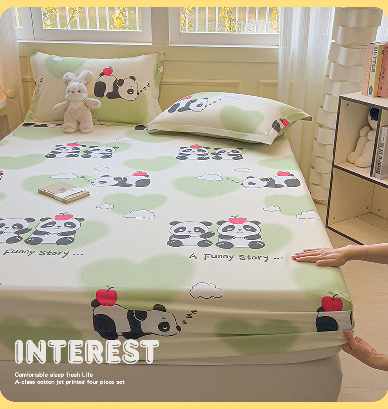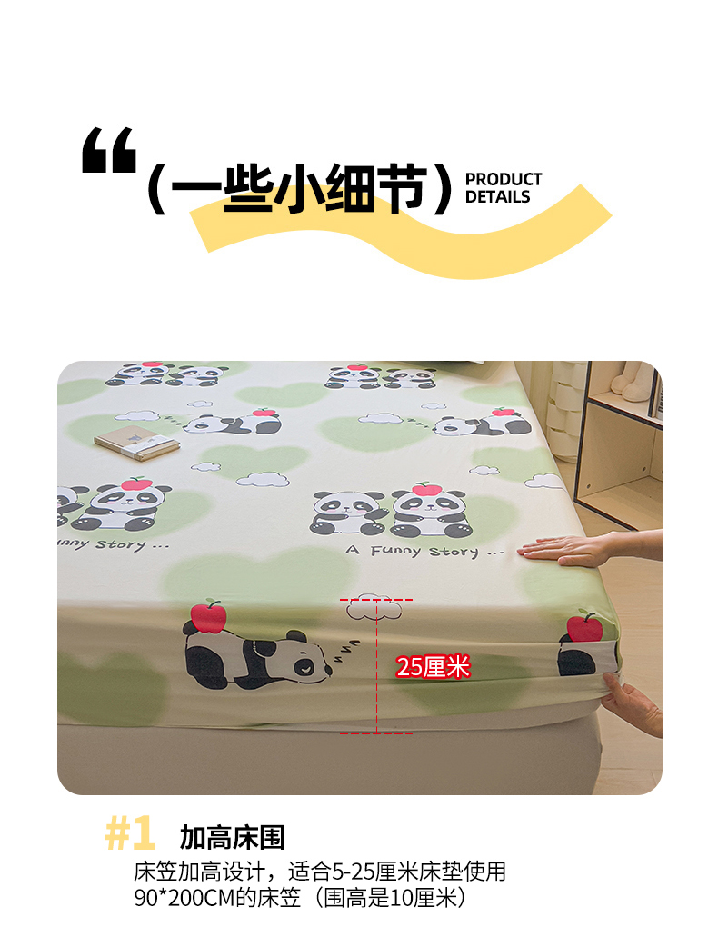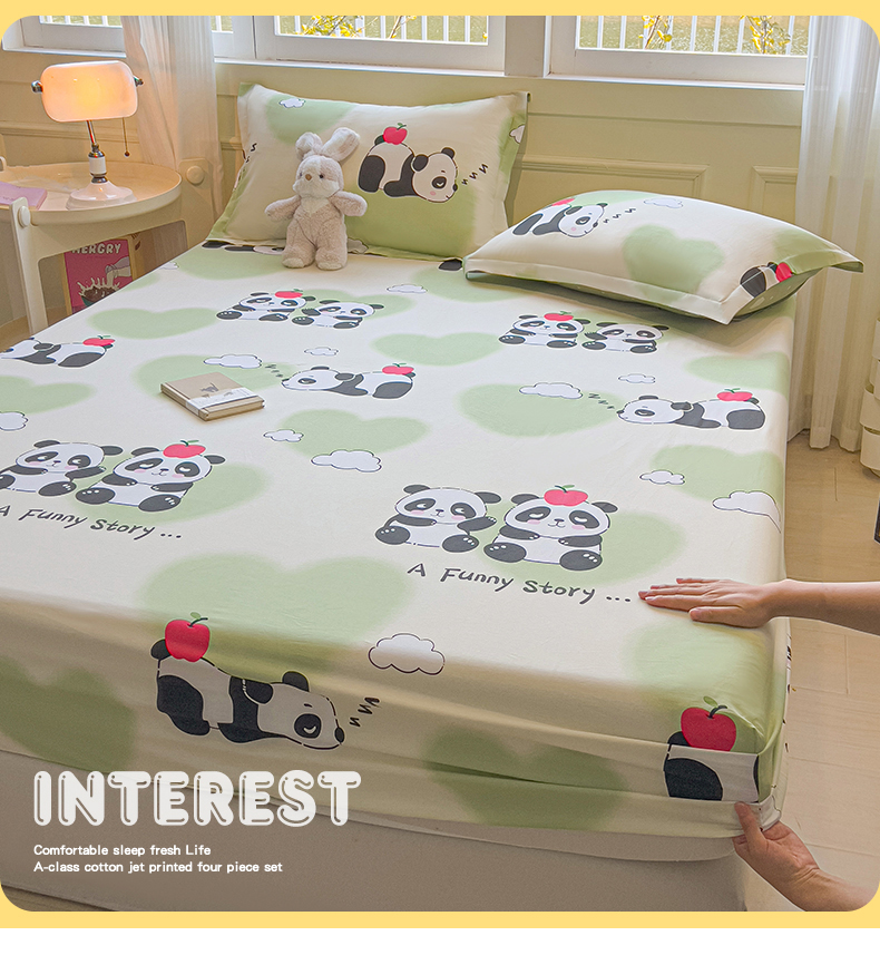 拾物记 2025新款A类无荧光全喷气全棉12868单床笠 熊猫趣事