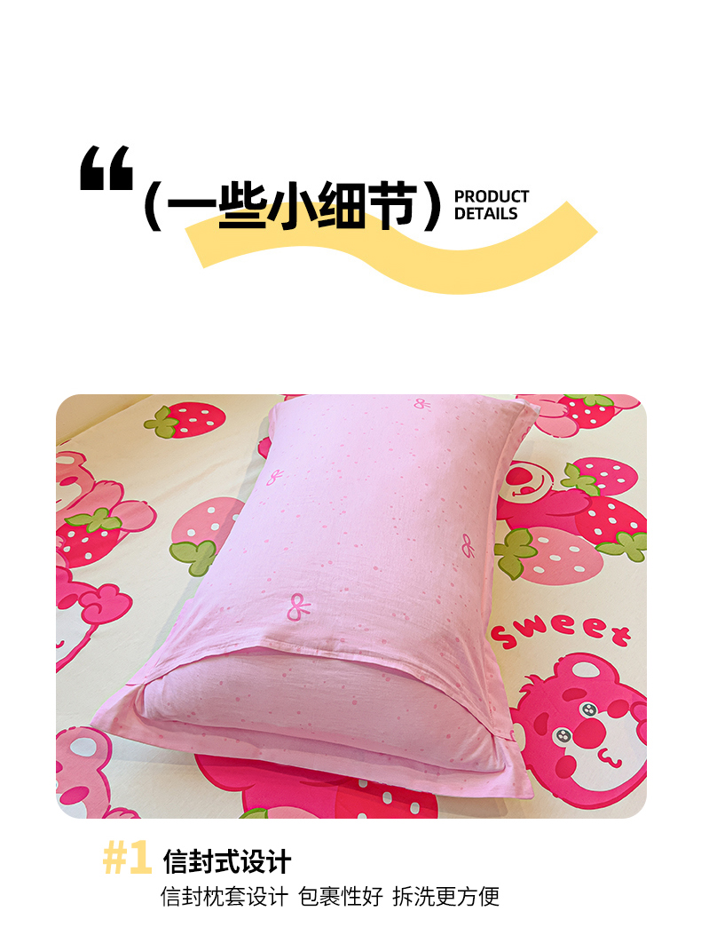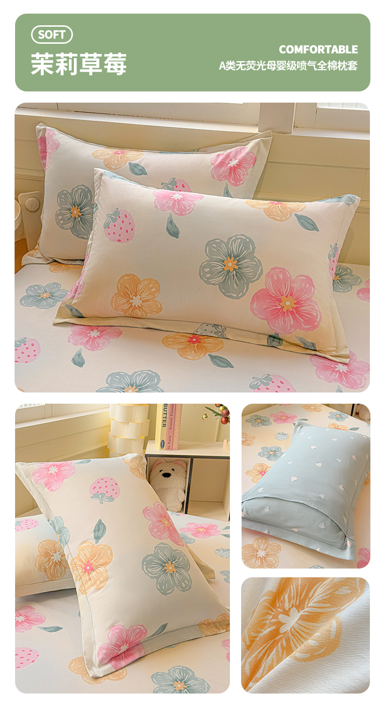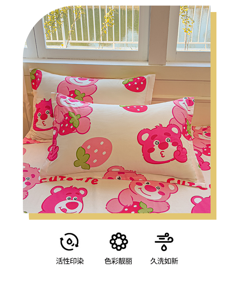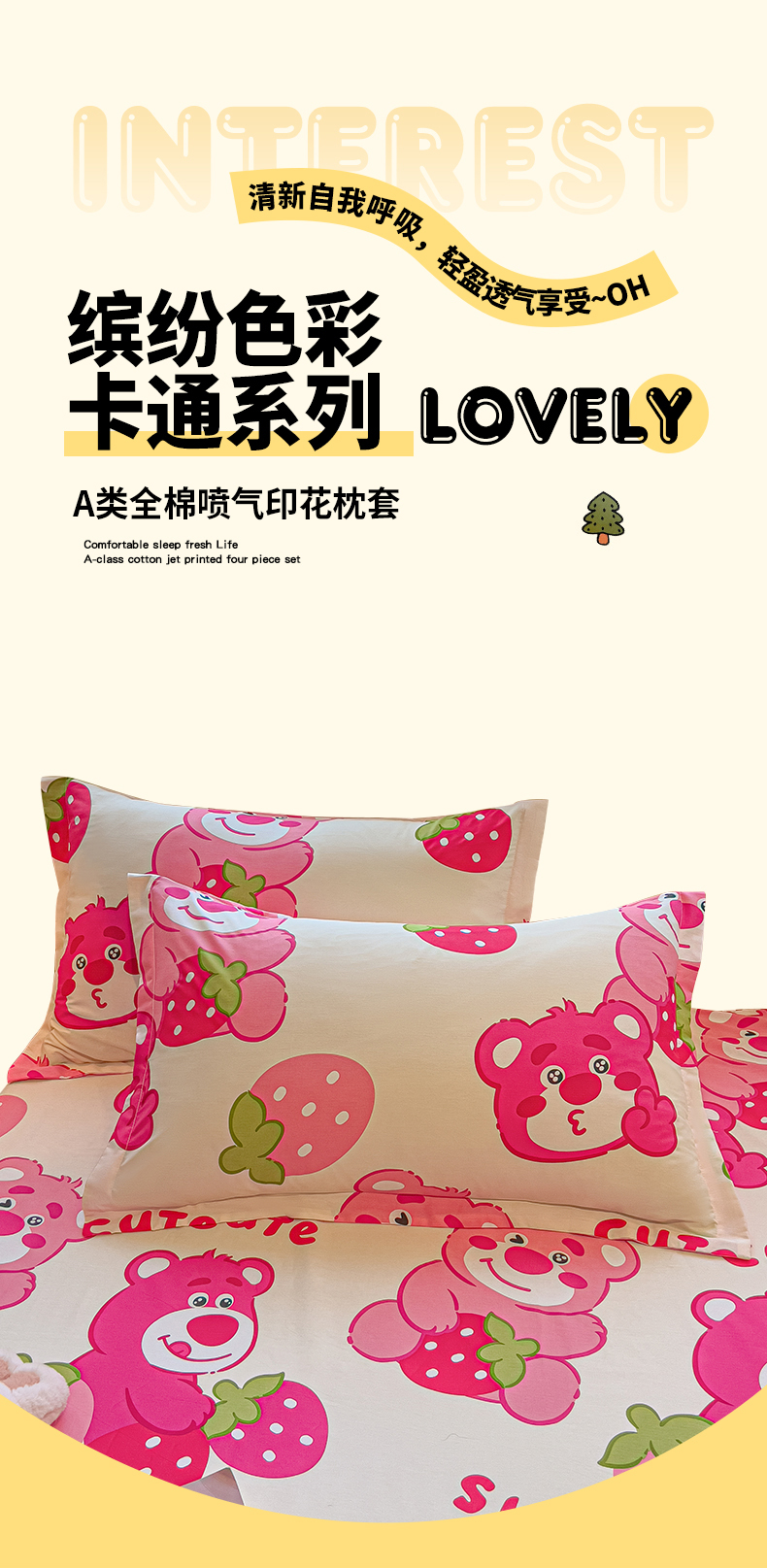 商品名称:拾物记 2025新款A类无荧光全喷气全棉12868单枕套 草莓堆堆熊