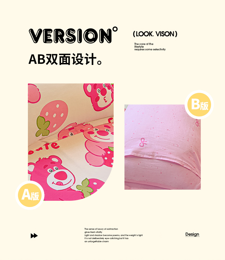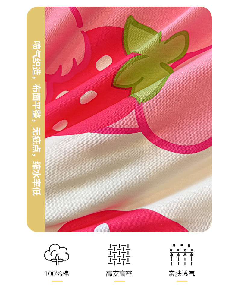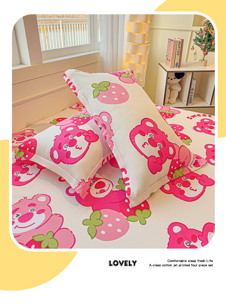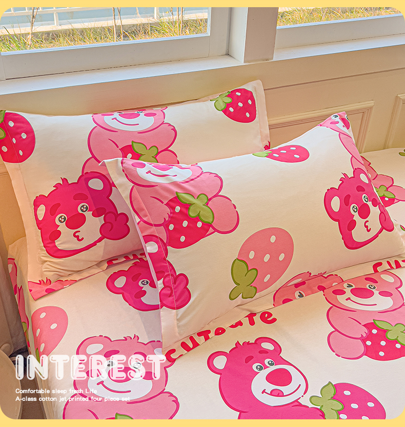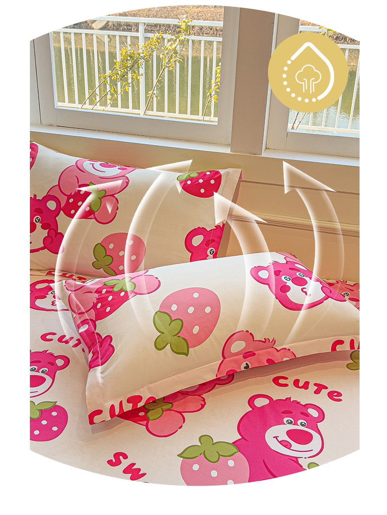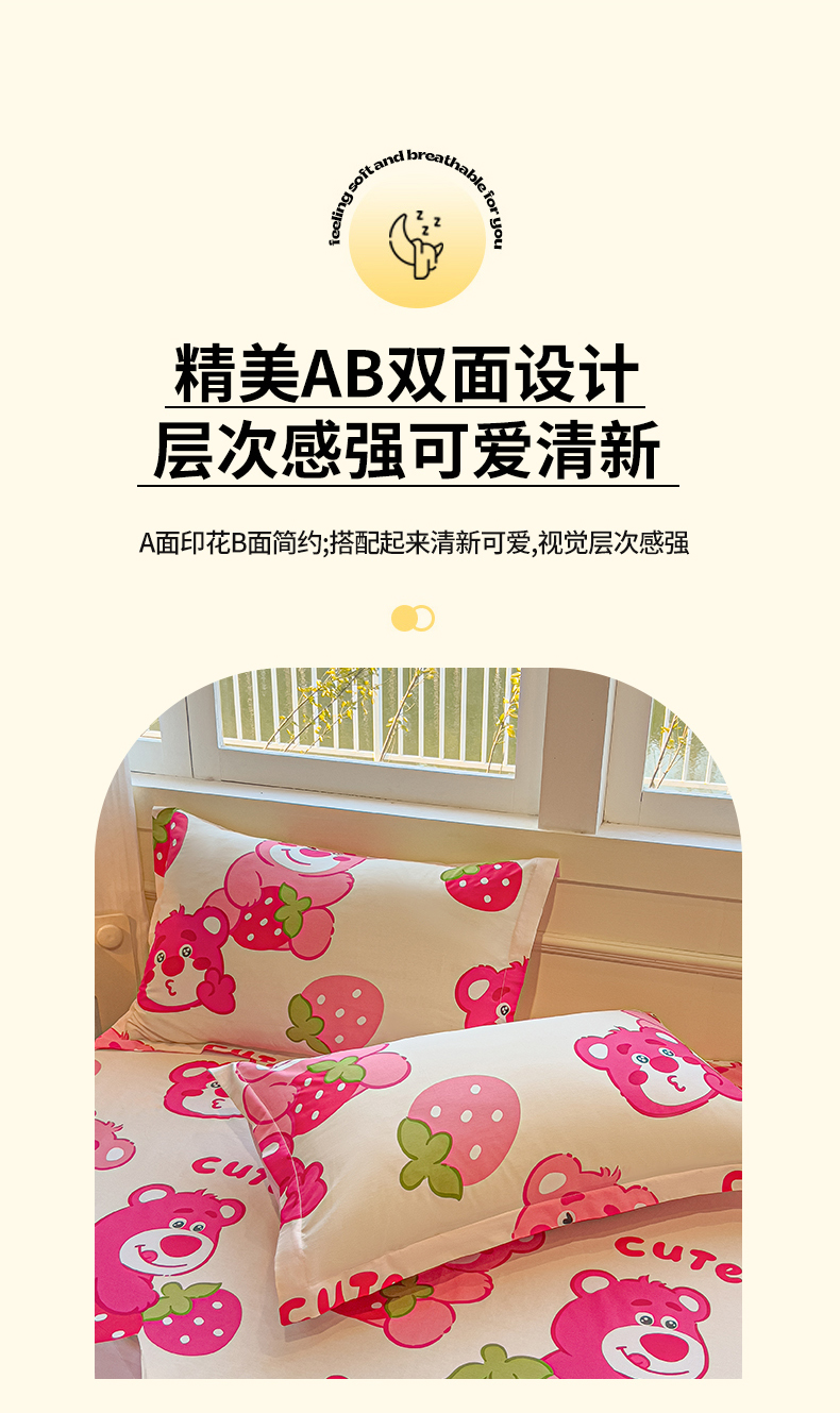 商品名称:拾物记 2025新款A类无荧光全喷气全棉12868单枕套 草莓堆堆熊