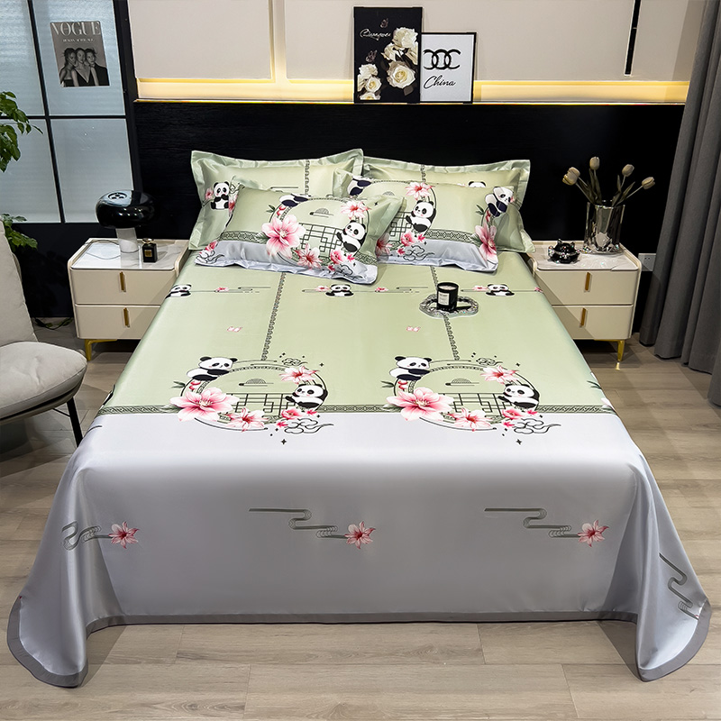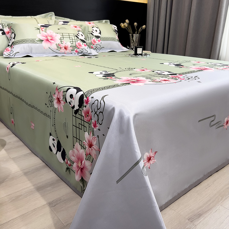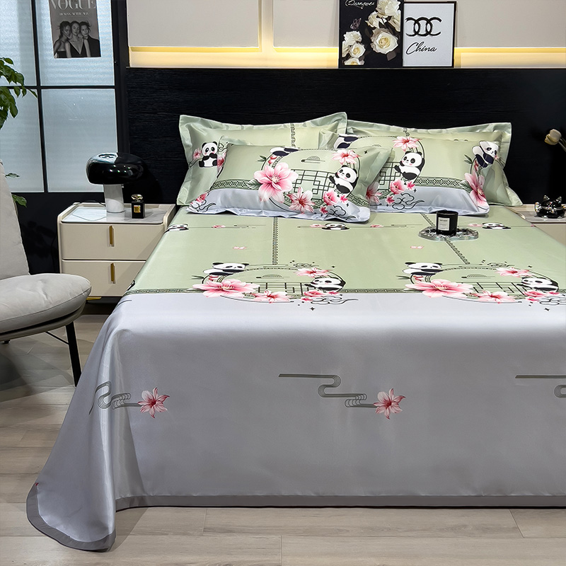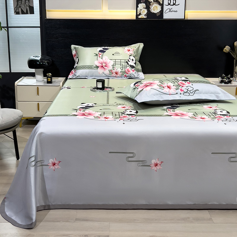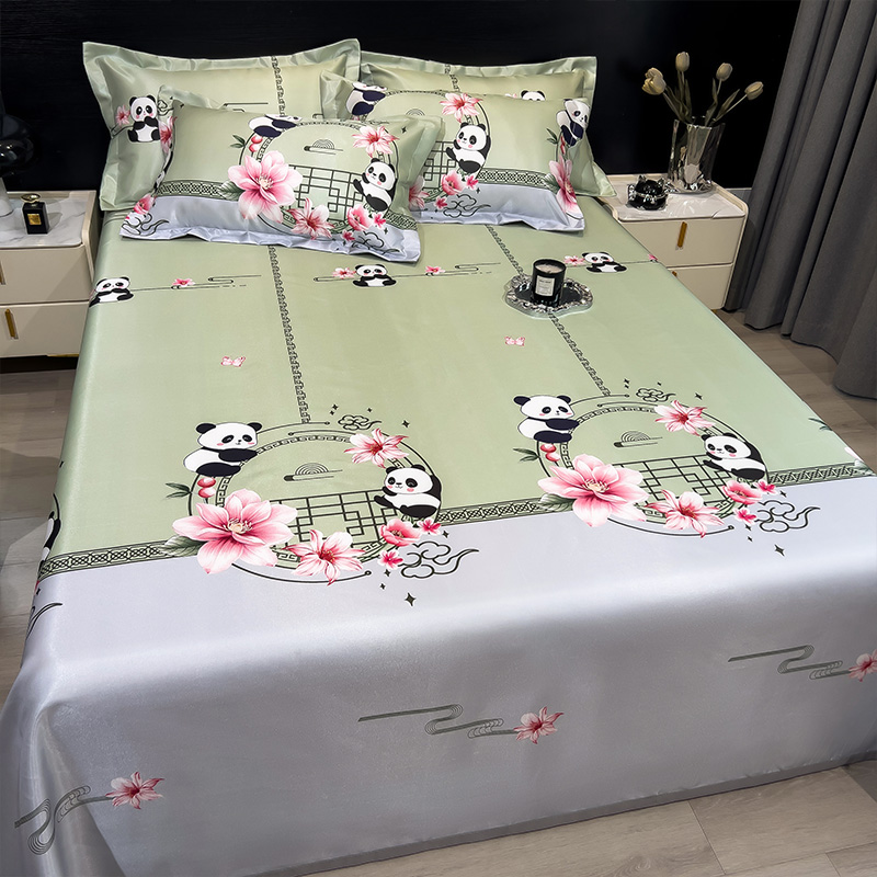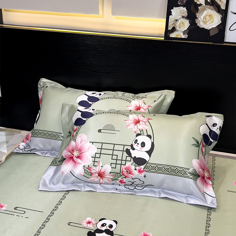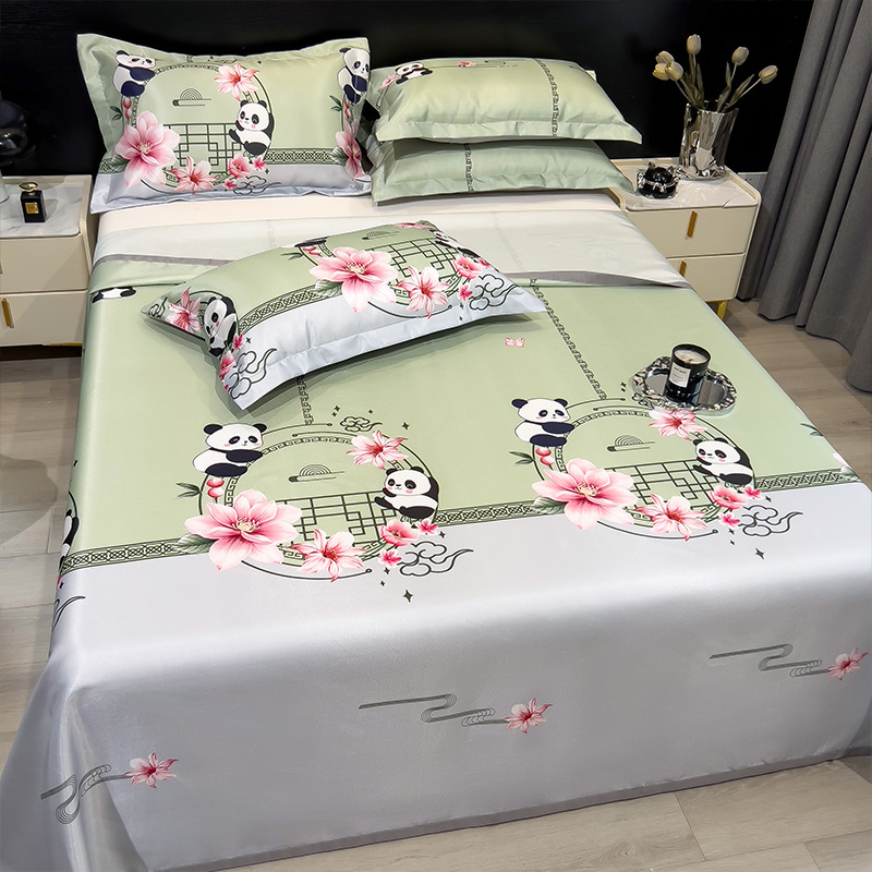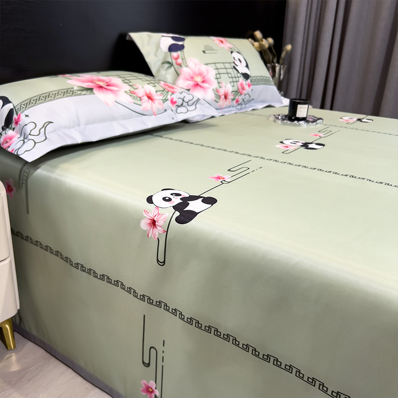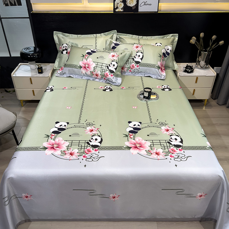 商品名称:柏薇 2025新款冰丝床单款凉席三件套系列 熊猫