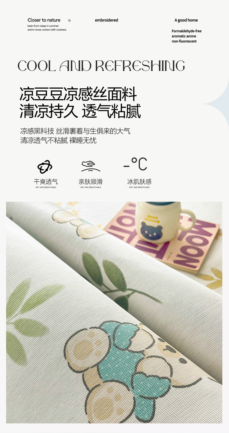 商品名称:倾慕家纺 2025新款时尚风凉感冰丝席 安逸熊宝