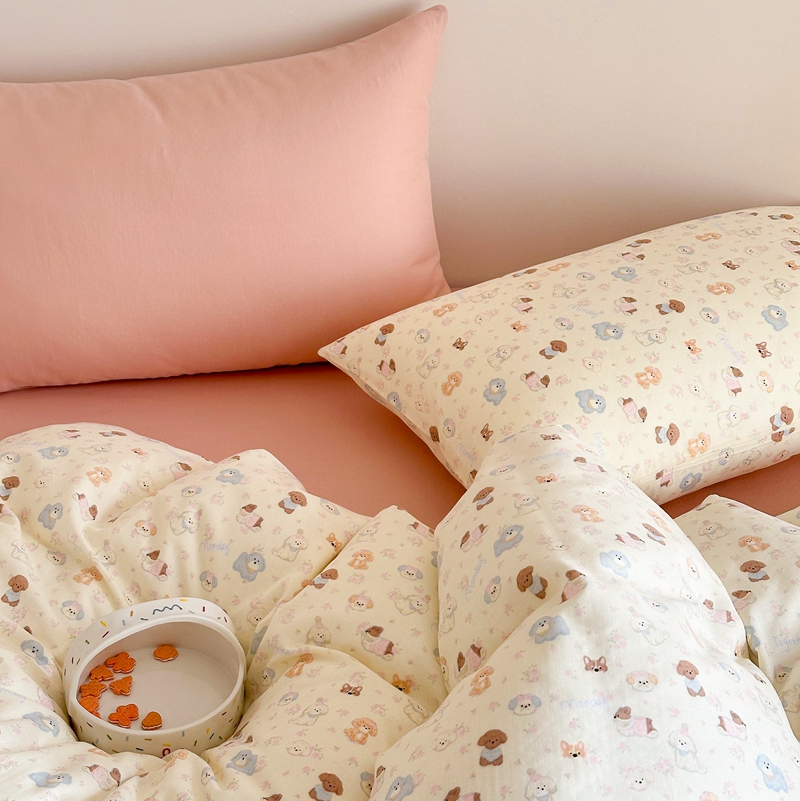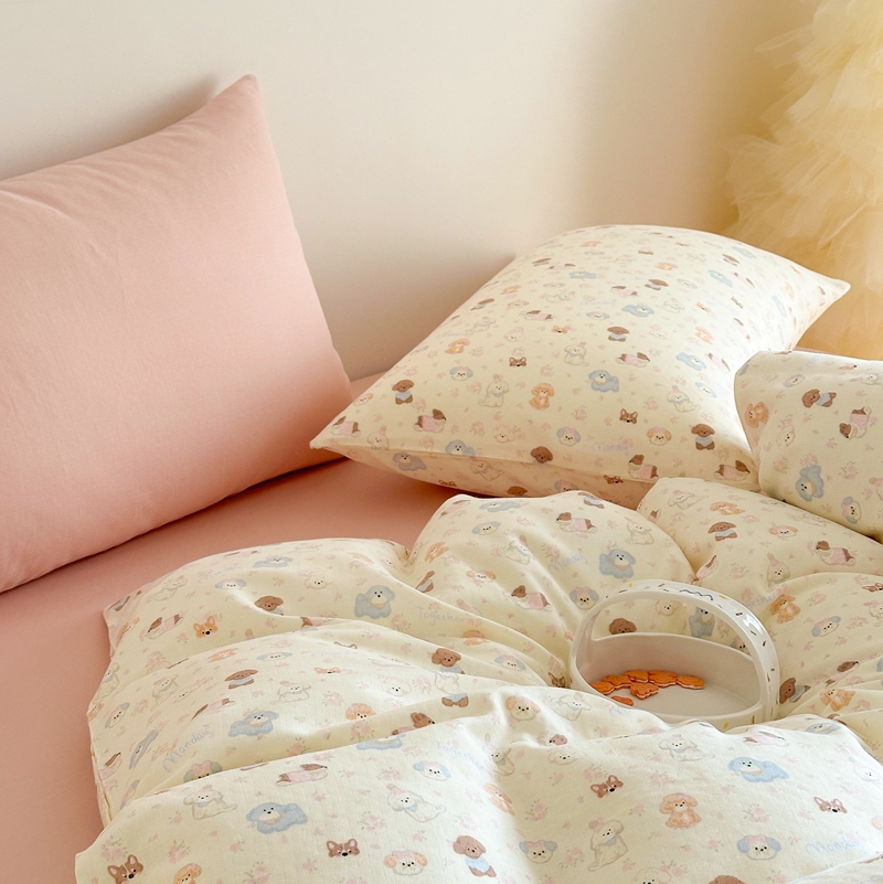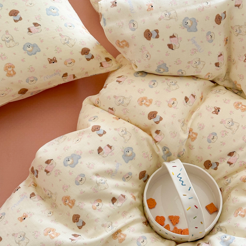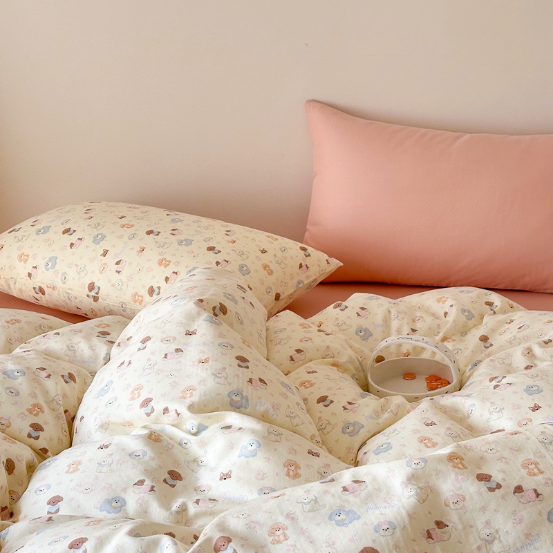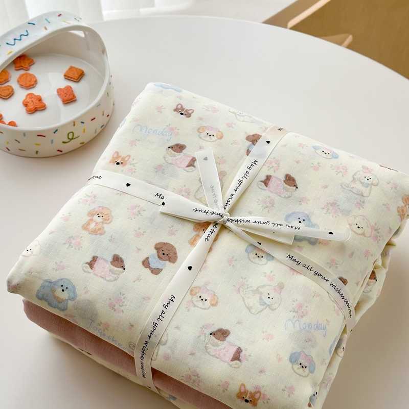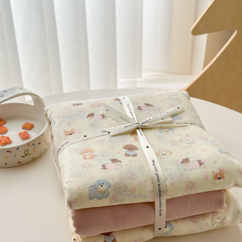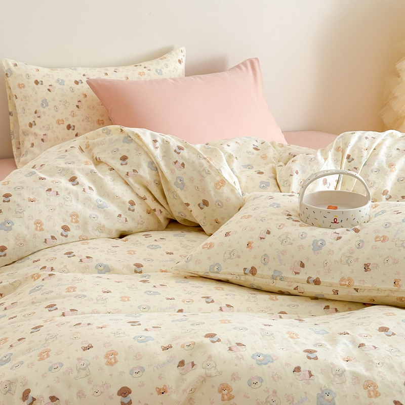 商品名称:桃喜 2025新款春夏双层纱卡通系列四件套 泡芙狗