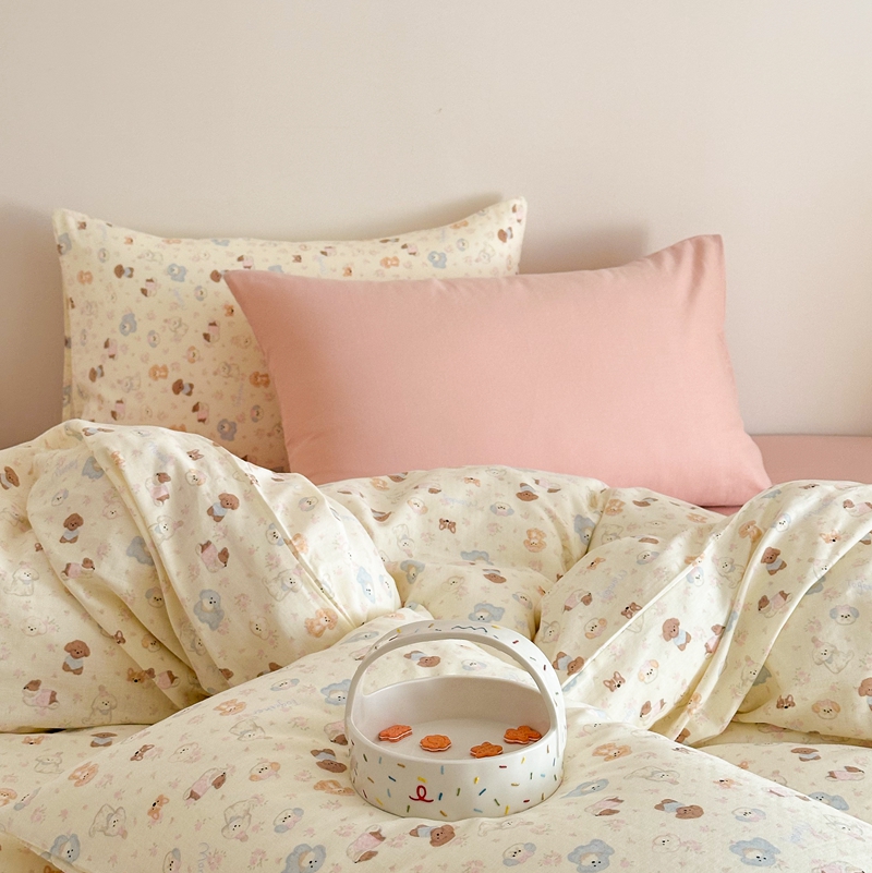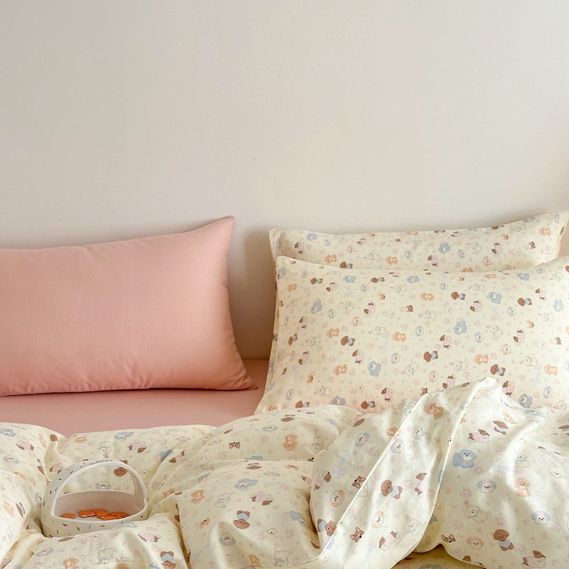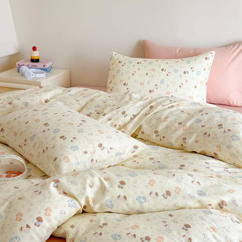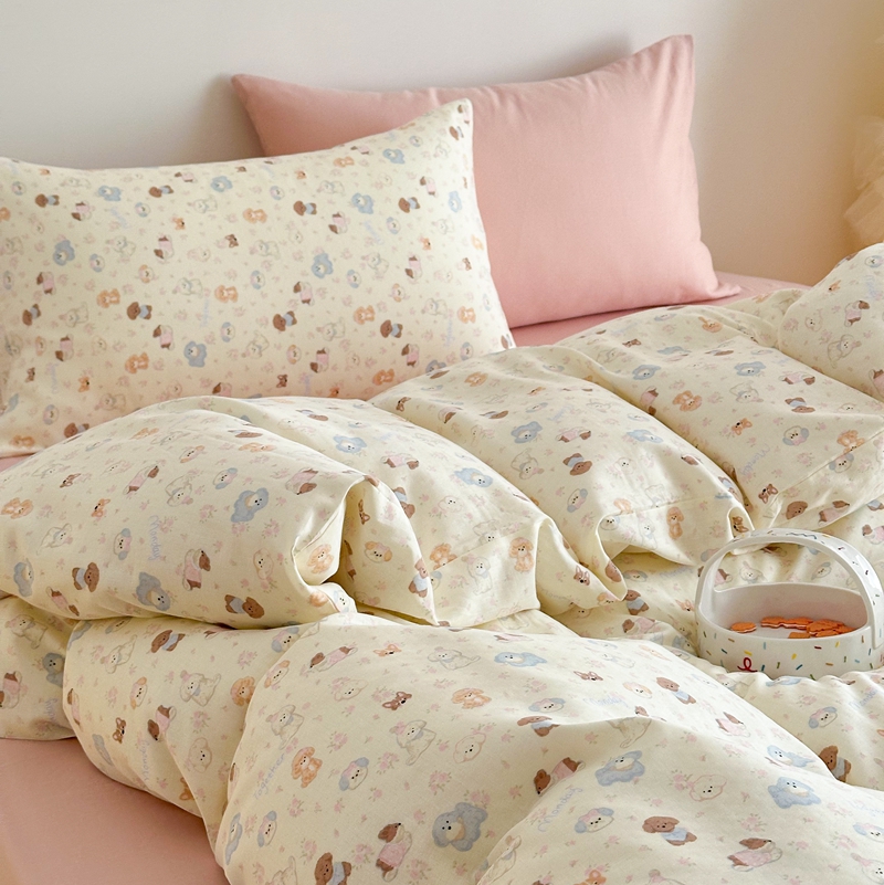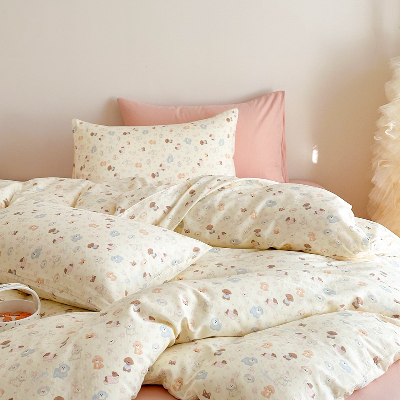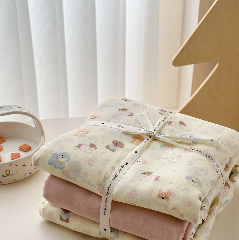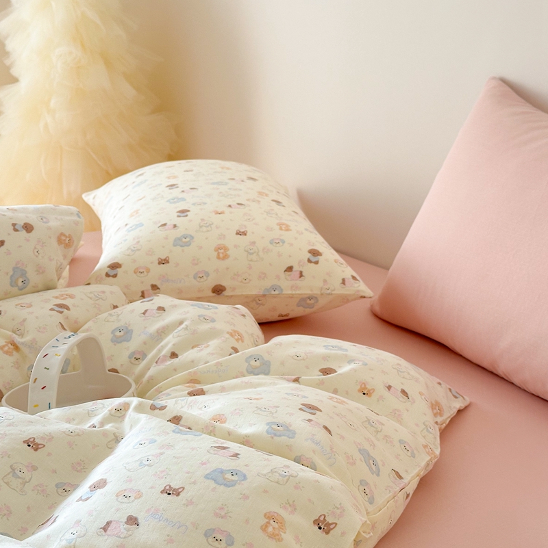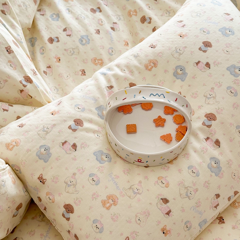 商品名称:桃喜 2025新款春夏双层纱卡通系列四件套 泡芙狗