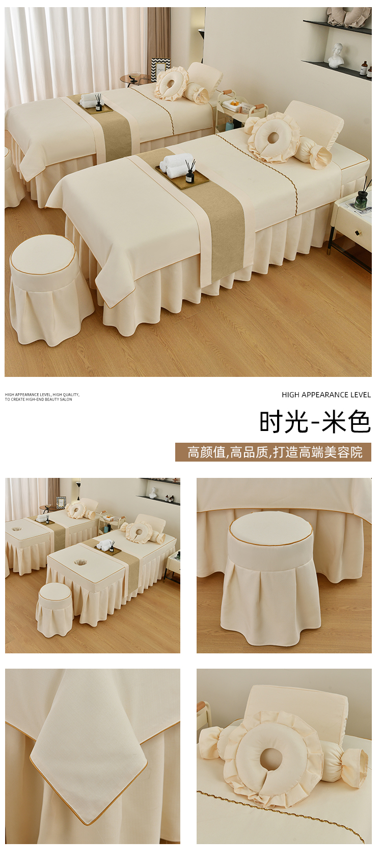 芙怡 2025春夏新款8029款A棉麻B全棉美容床罩四件套-时光系列 时光-米色