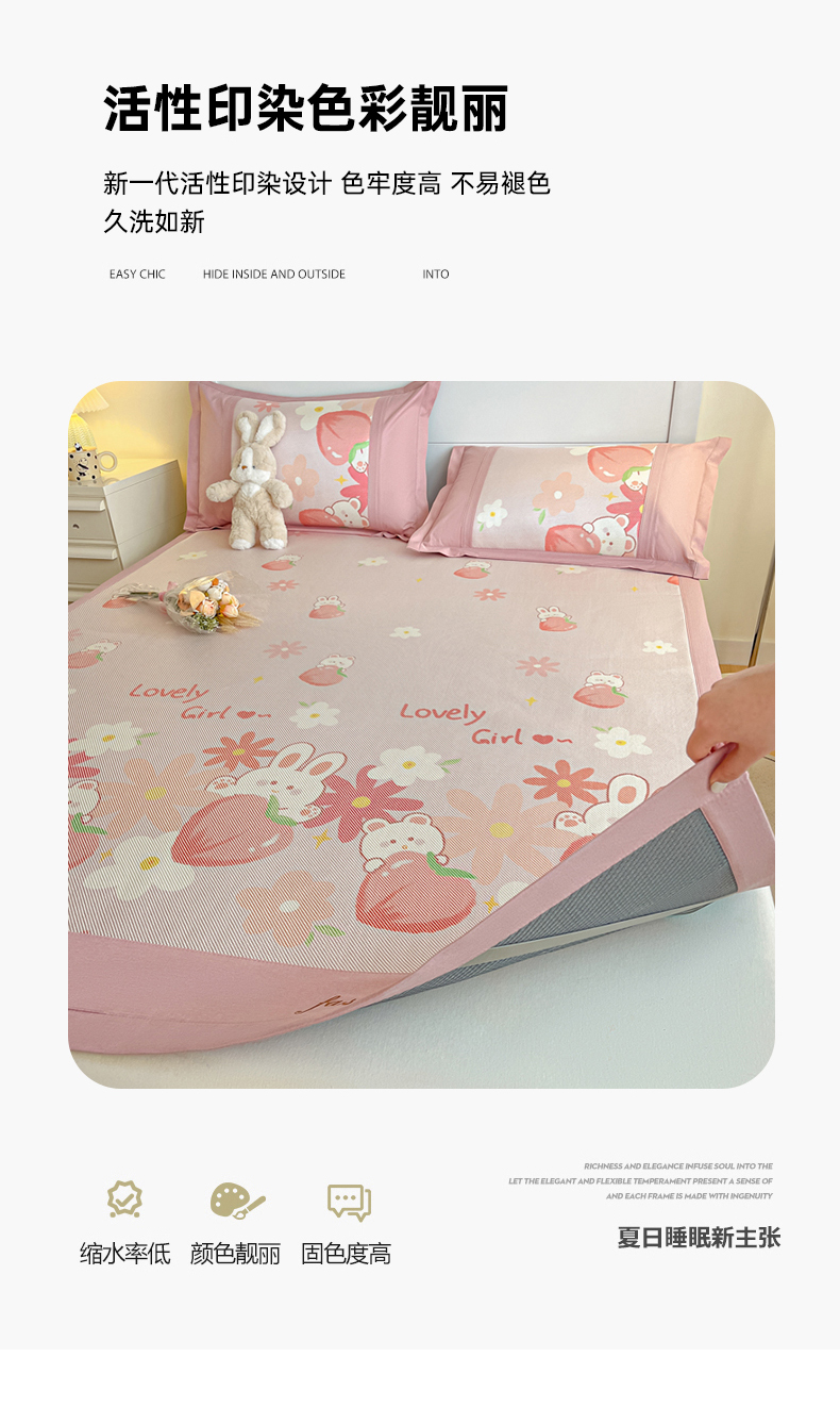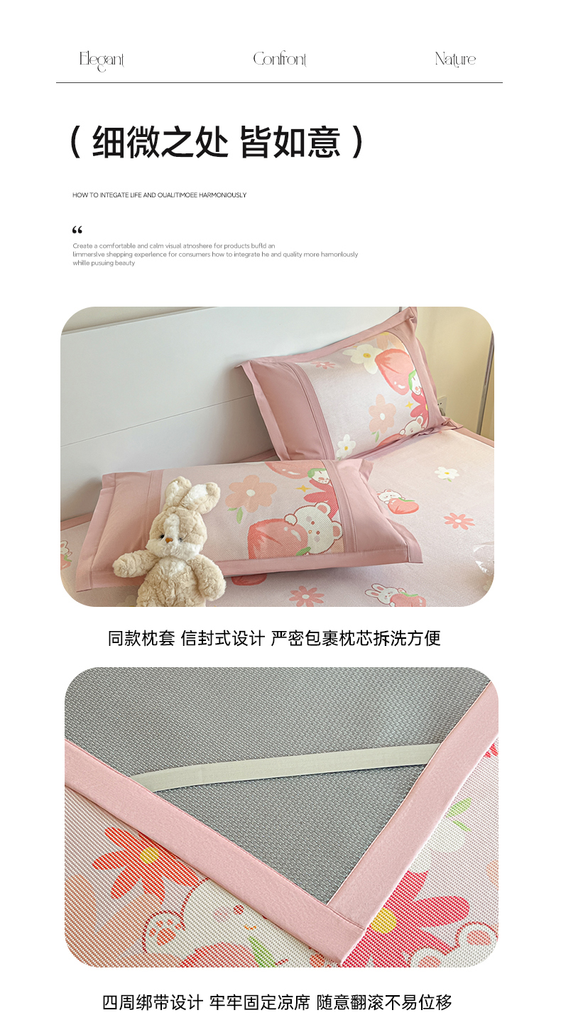 商品名称:阿亮家居 2025新款印花冰藤席凉席 兔粉