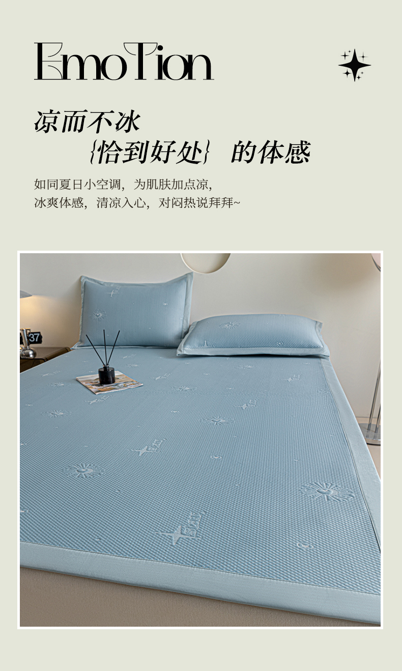 (总)阿亮家居 2025新款A类母婴级1800D碳光小鹿冰丝席凉席,宾利蓝,冰川灰,繁星绿,山茶粉,香槟金