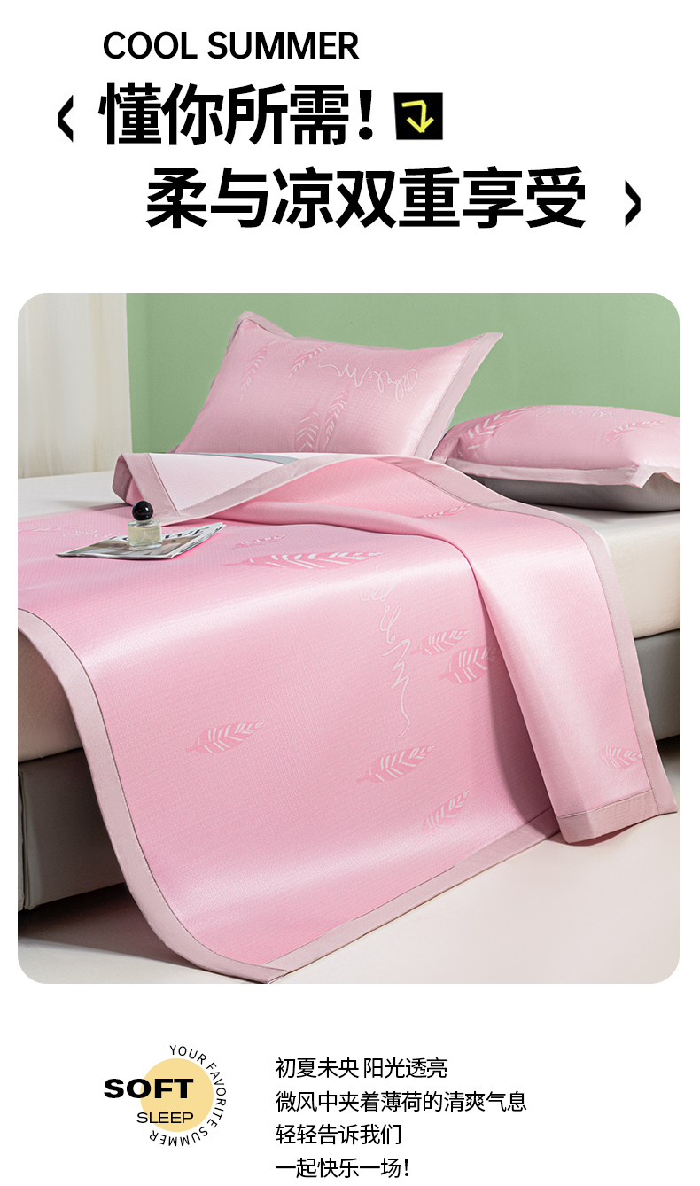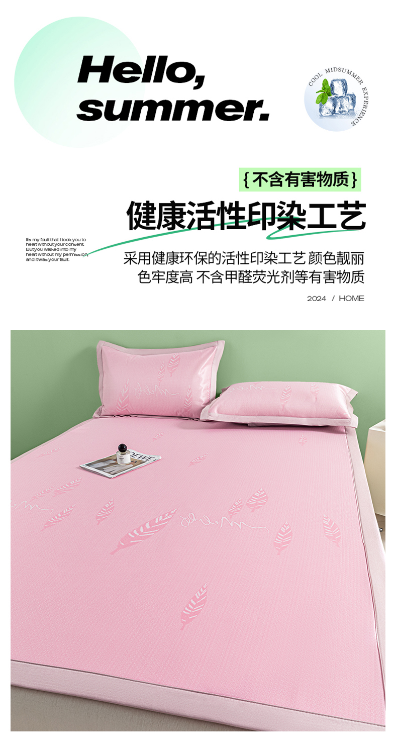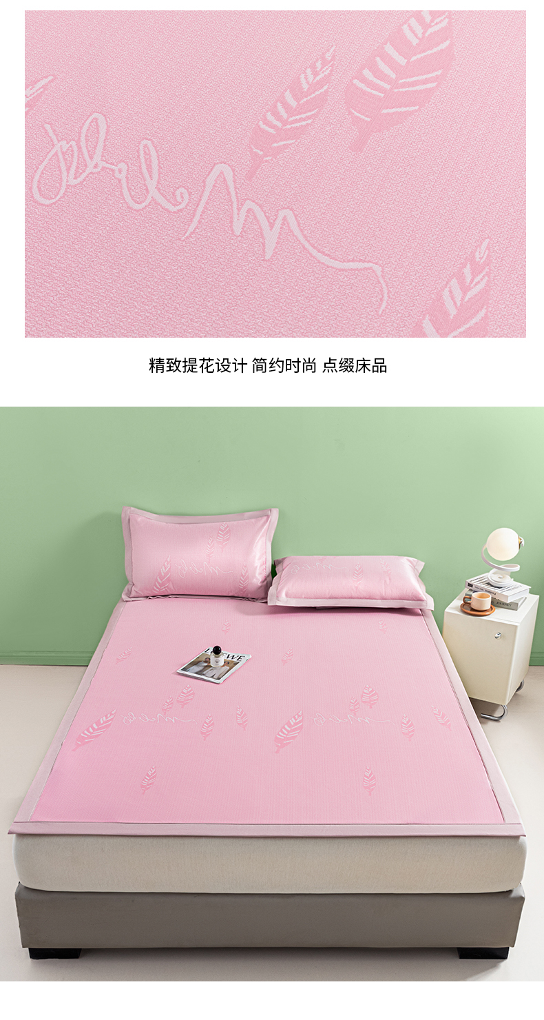 商品名称:阿亮家居 2025新款凉席碳光席冰丝席三件套 叶语芊芊-粉