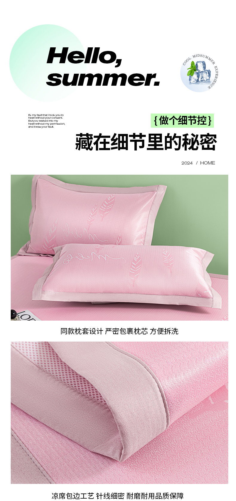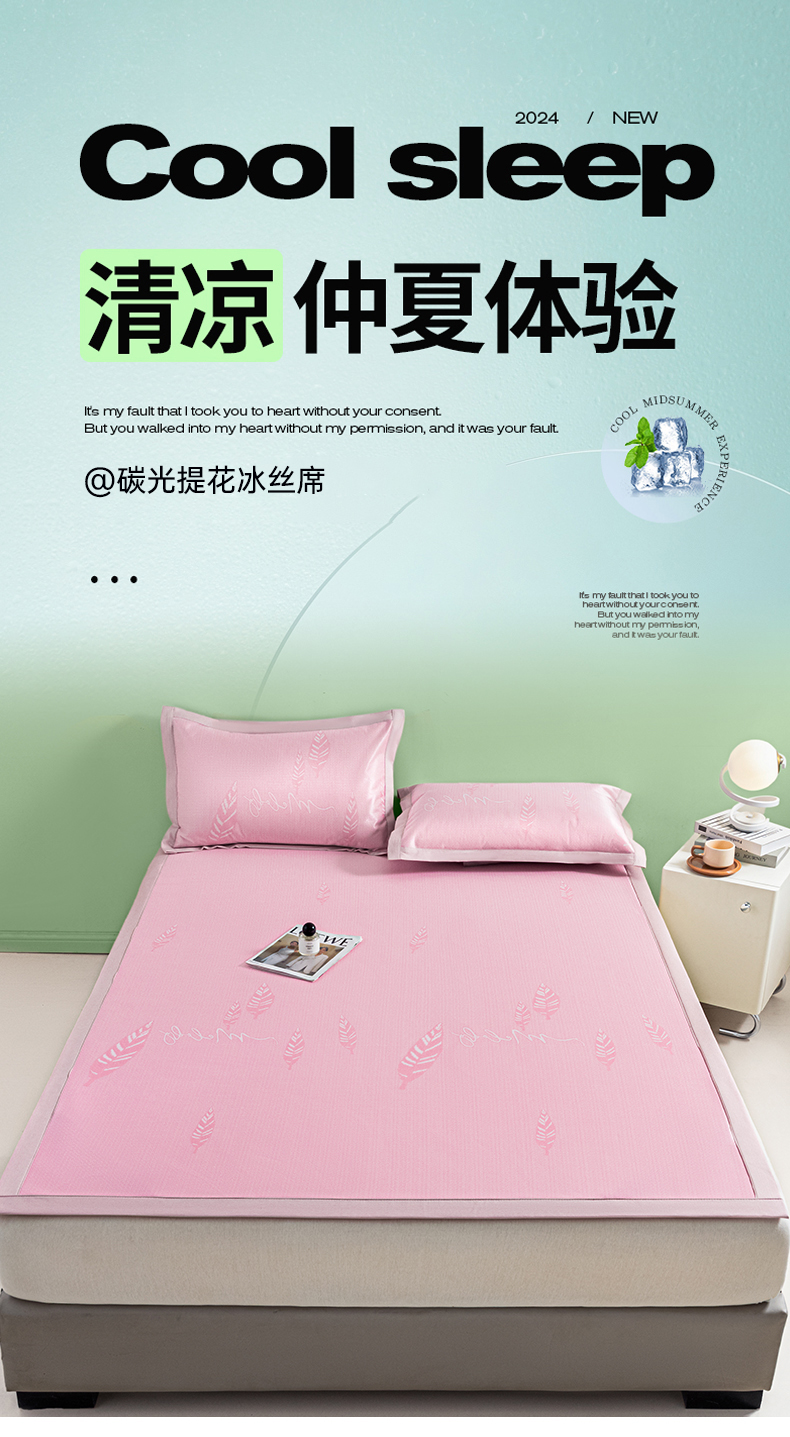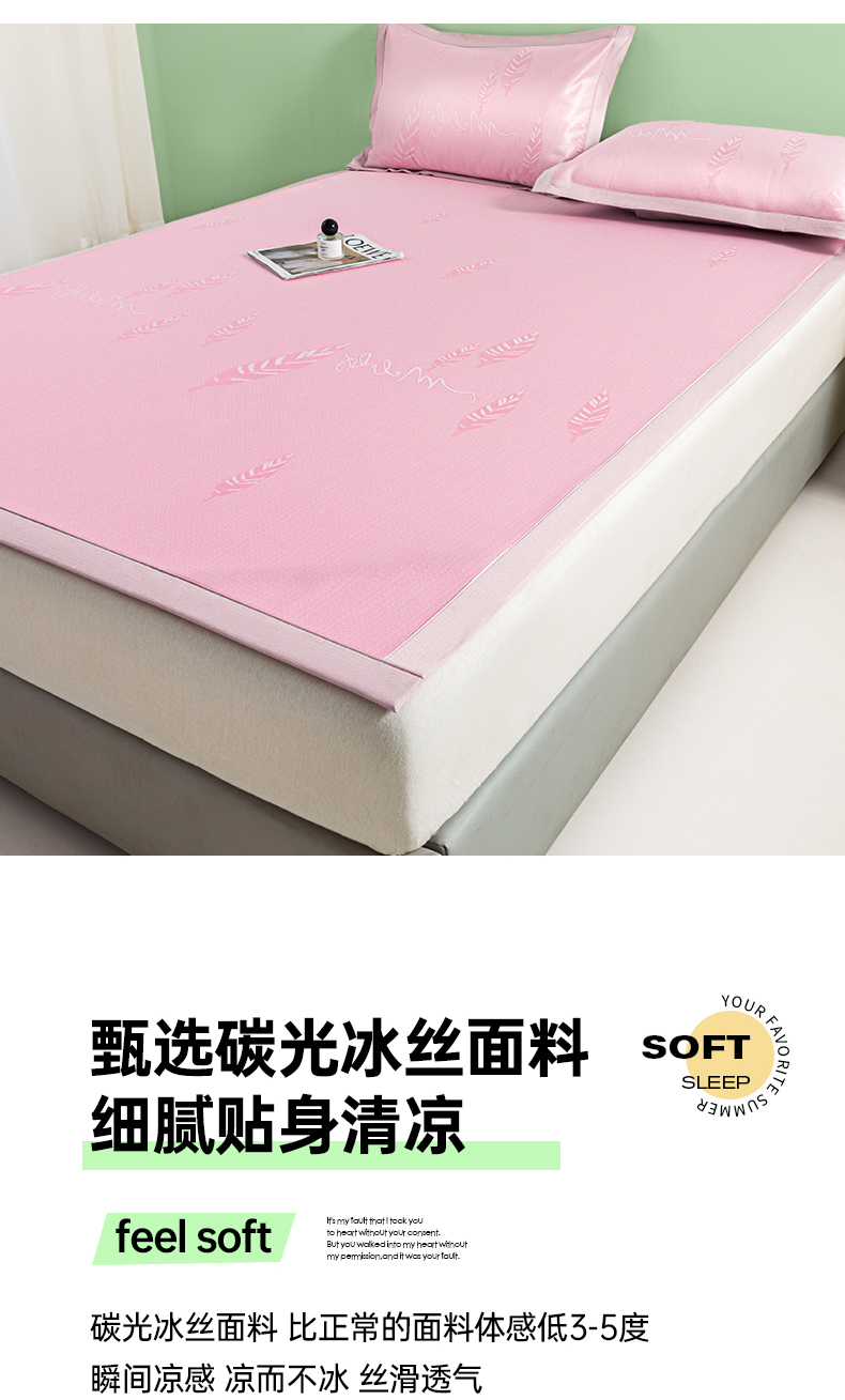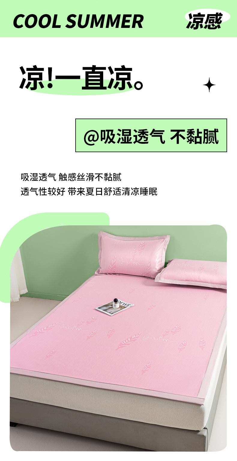 商品名称:阿亮家居 2025新款凉席碳光席冰丝席三件套 叶语芊芊-粉