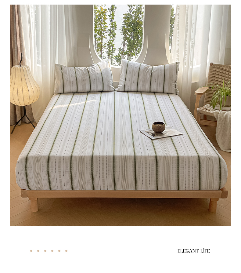 雅居纺家纺 2025春夏新款全棉纯棉简约老粗布-单床笠 床笠单件凉席席 自由-绿