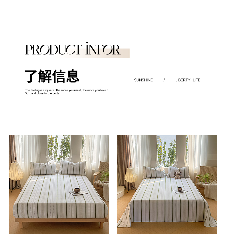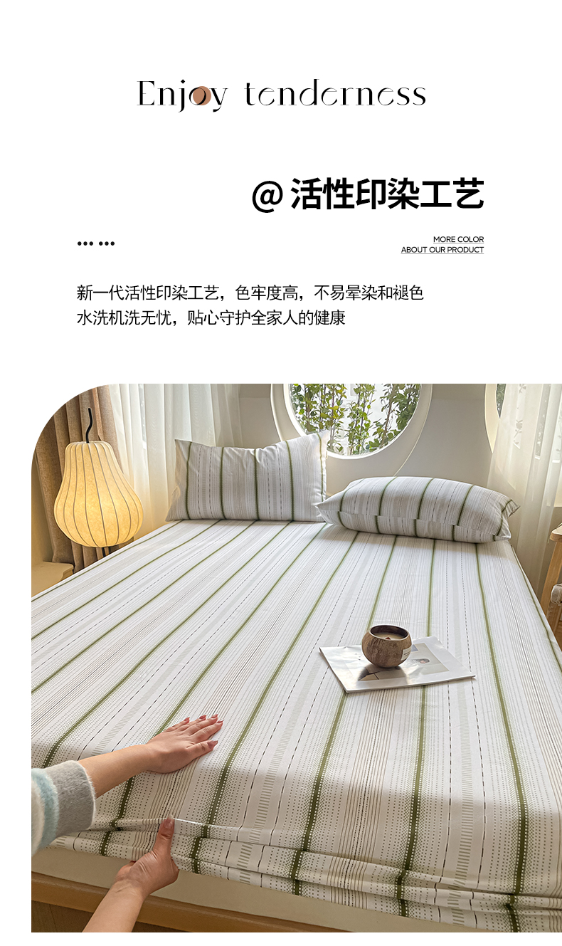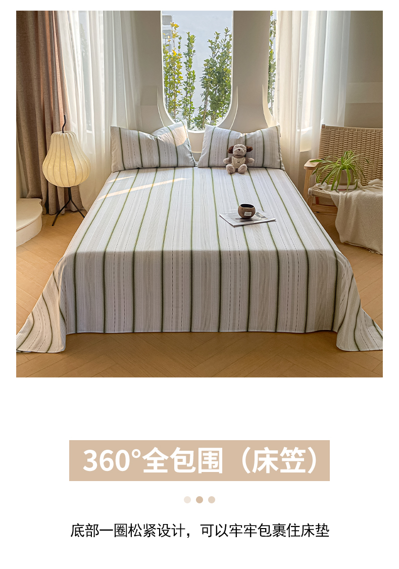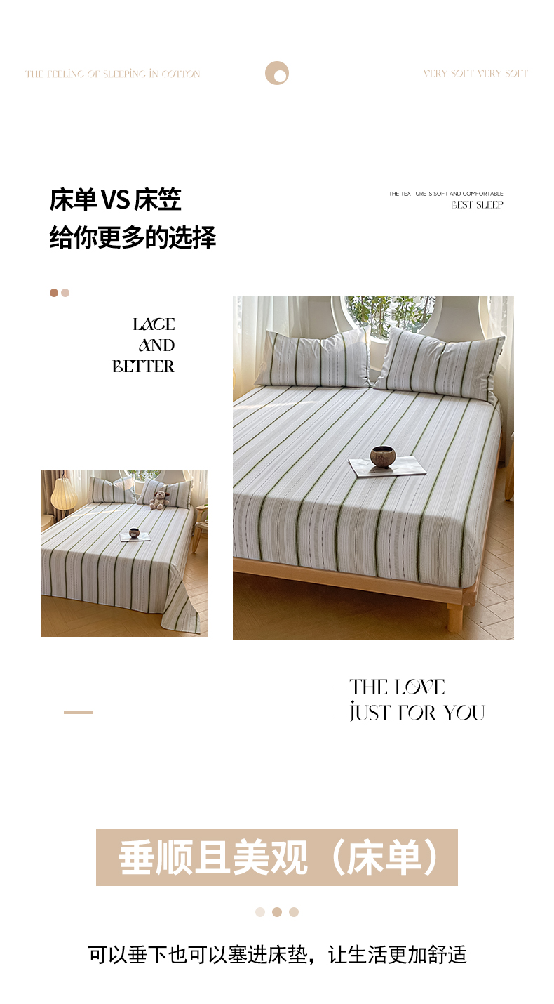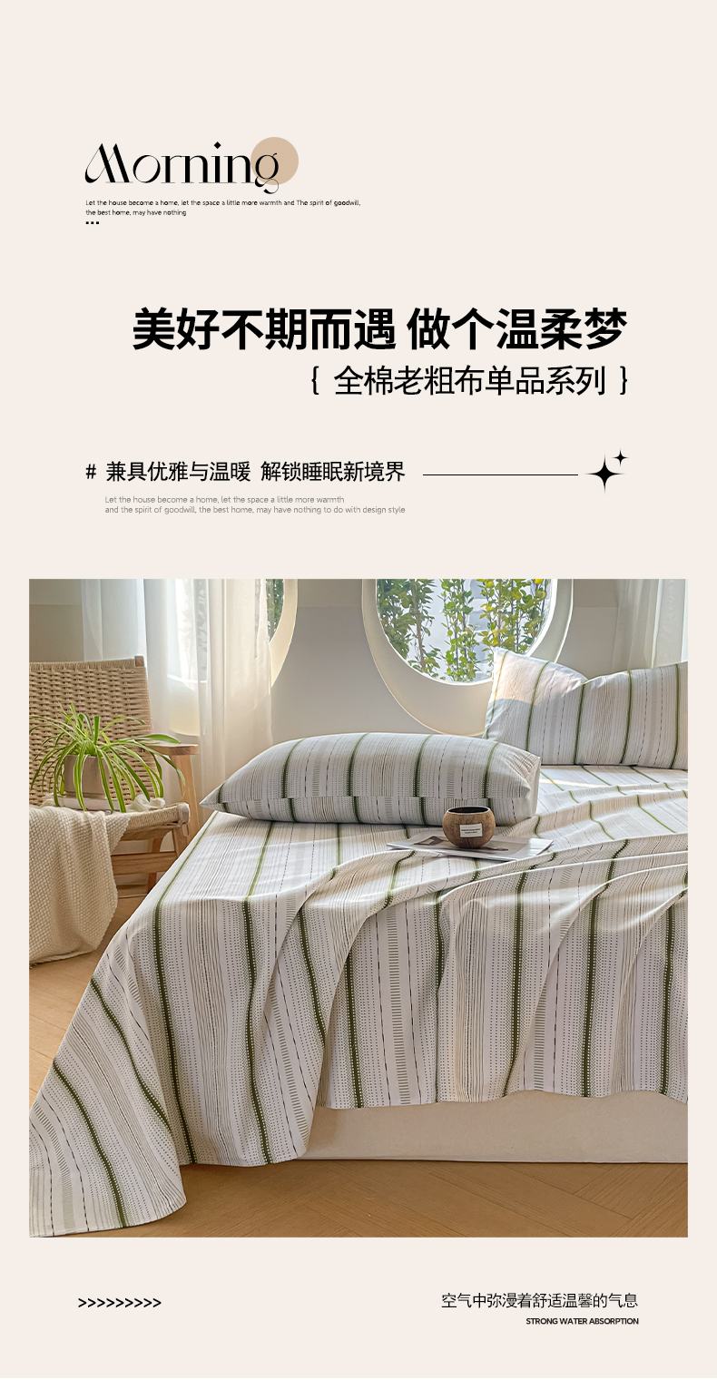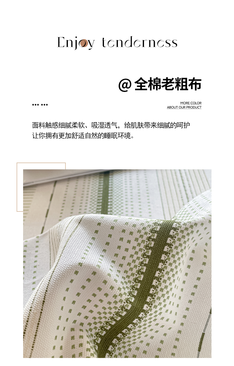 商品名称:雅居纺家纺 2025春夏新款全棉纯棉简约老粗布-单床笠 床笠单件凉席席 自由-绿