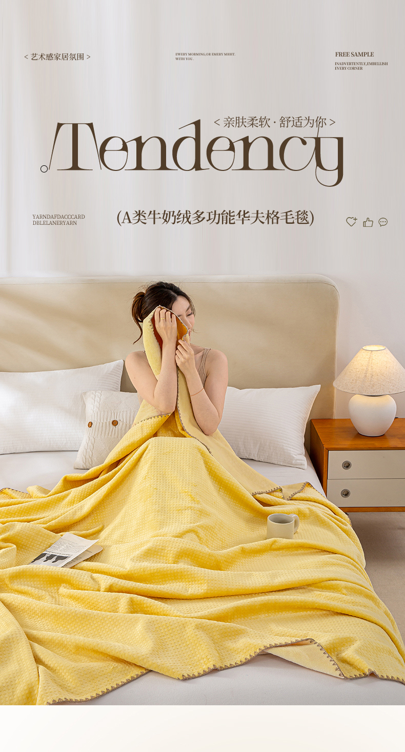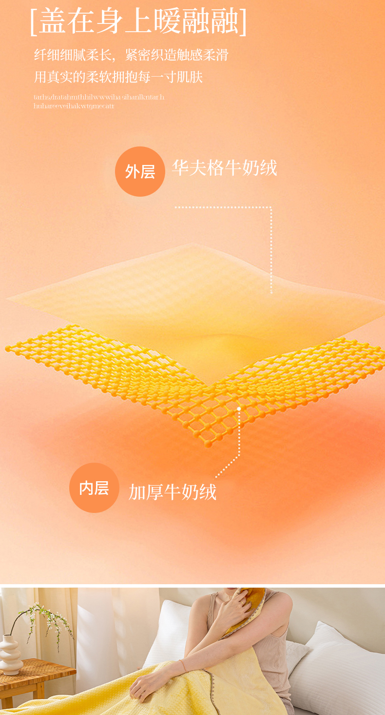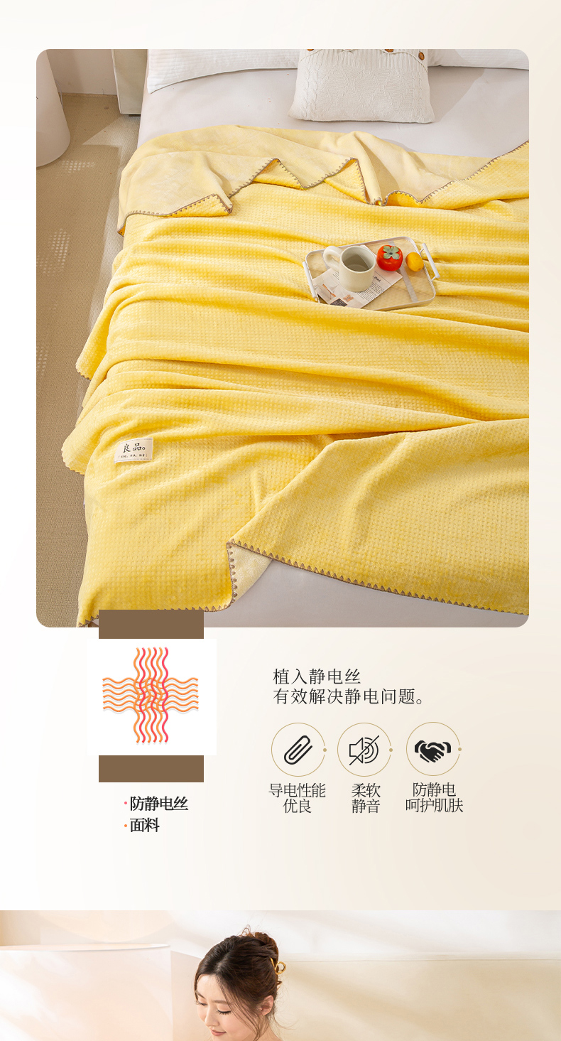 商品名称:恋人优选 2025新款华芙绒双层复合毯毛毯毯子 奶黄