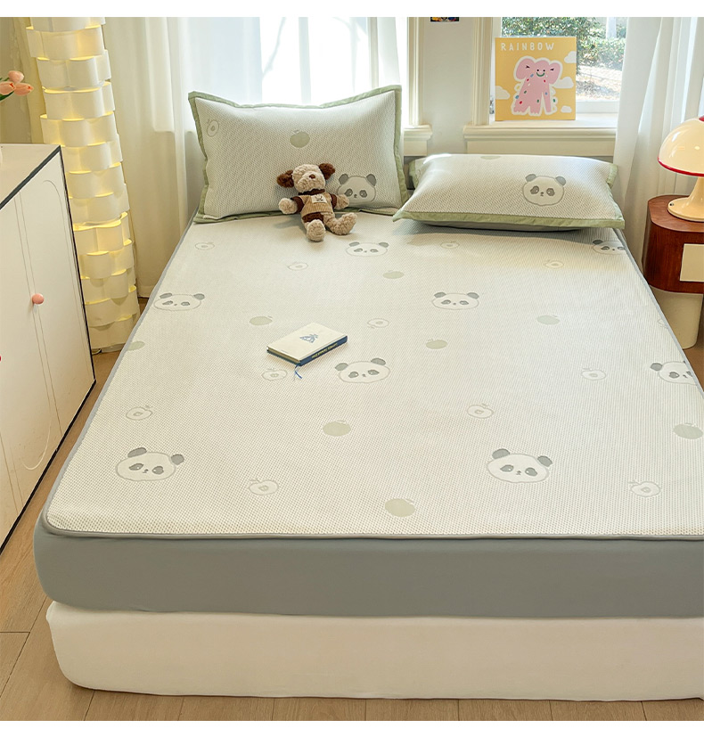 雅居纺家纺 2025春夏新款A类加厚三明治底提花凉感席床笠款 平安熊猫