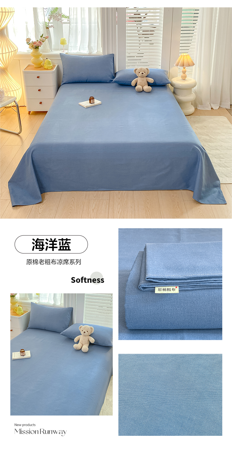 • 91家纺网 家纺一手货源 找家纺 米柳2025新款原棉老粗布凉席系列 海洋蓝
