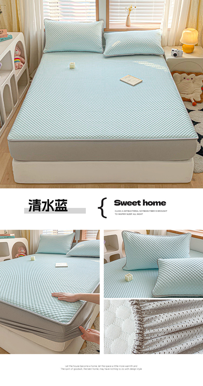 商品名称:卡伦家纺2025新款凉感丝凉豆豆凉席床笠系列 清水蓝