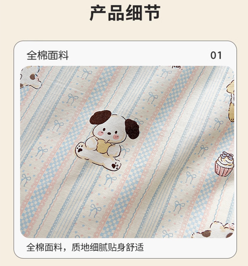 商品名称:棉生活家纺 2025新款ins全棉小清新系列四件套 治愈萌宠