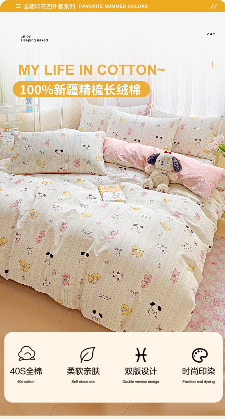 棉生活家纺 2025新款ins全棉小清新系列四件套 治愈萌宠