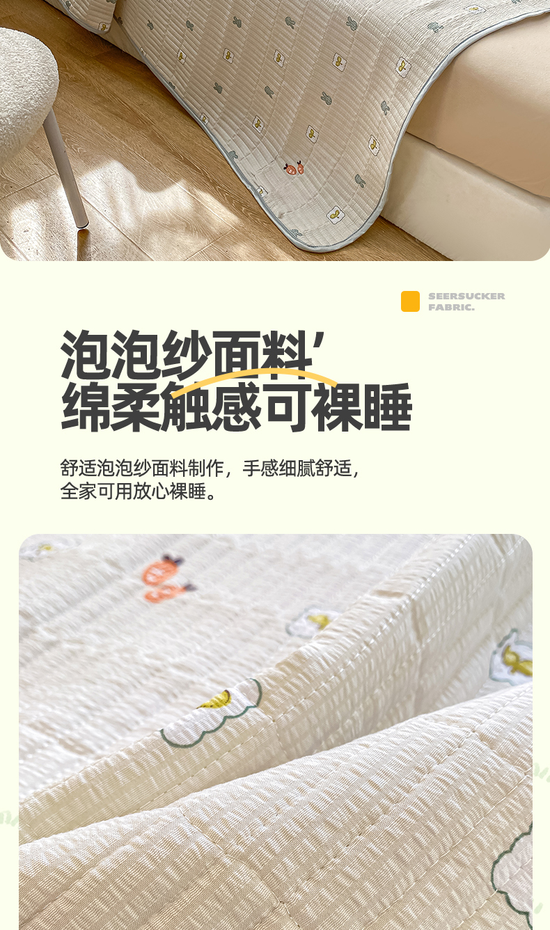 • 91家纺网 家纺一手货源 找家纺 美克家居 2025新款泡泡纱软垫床护垫床褥子床垫小清新印花床盖 豆沙熊床盖款