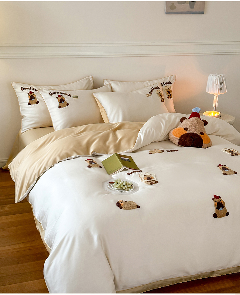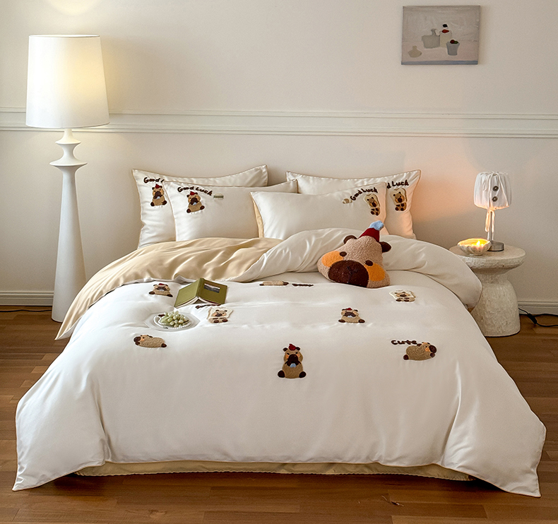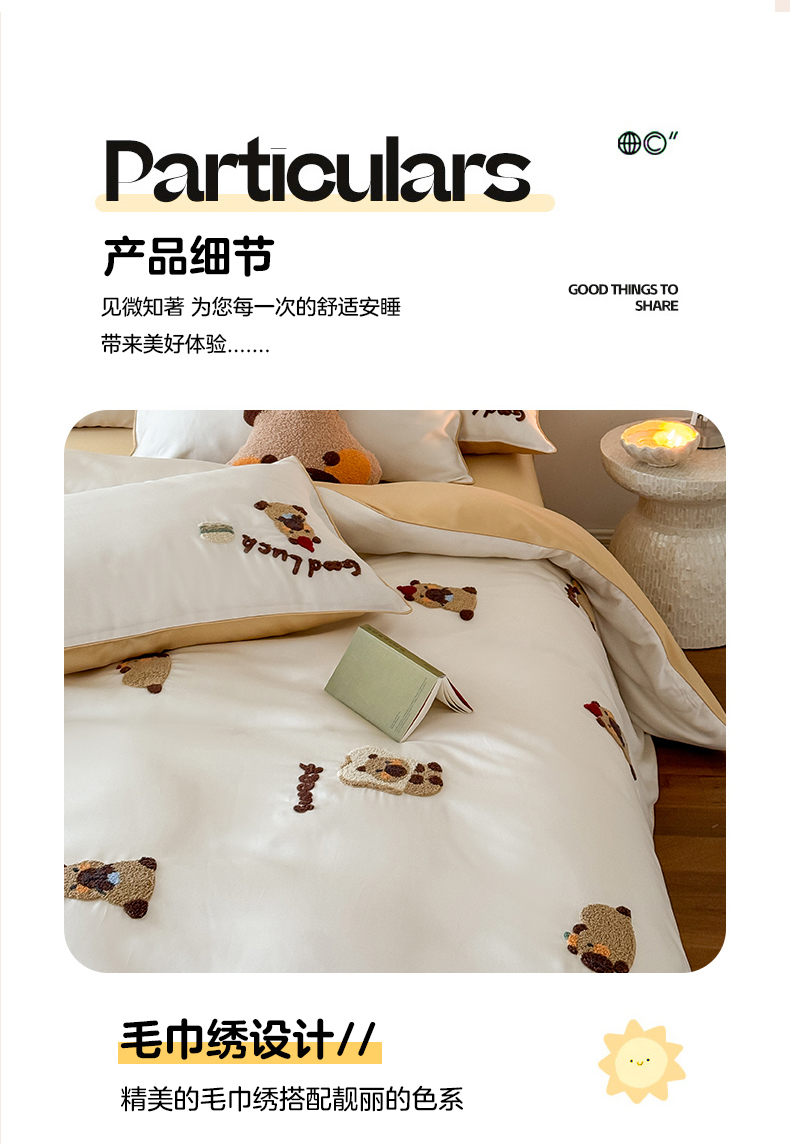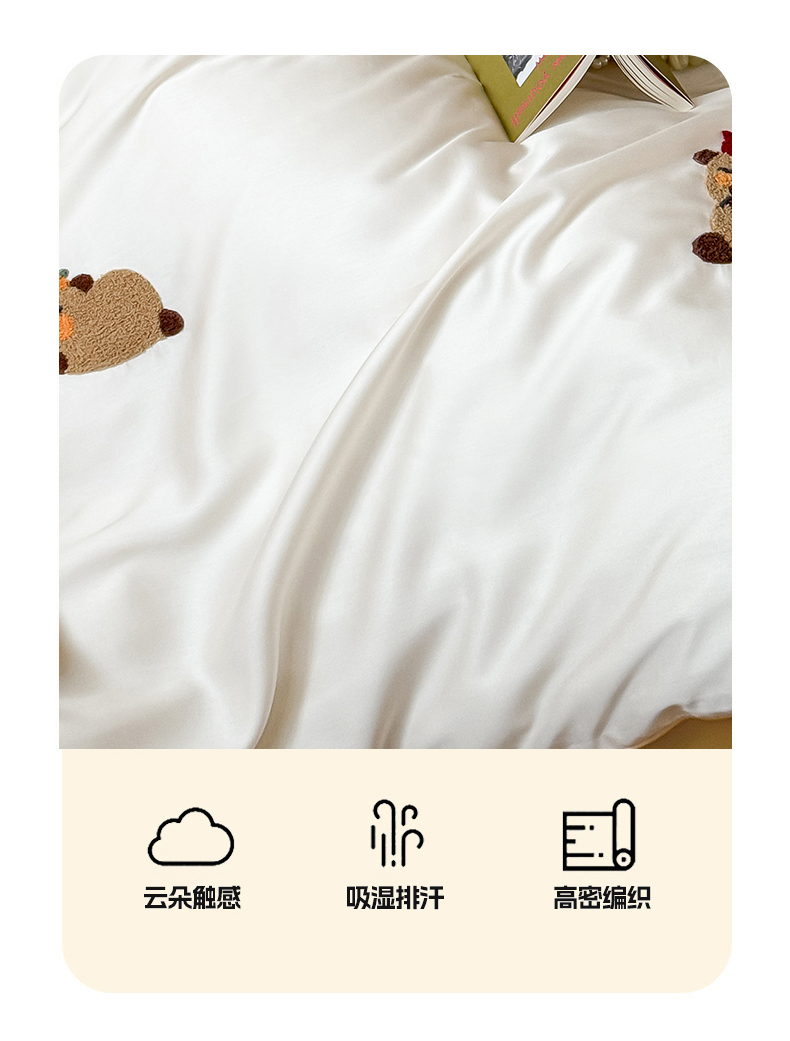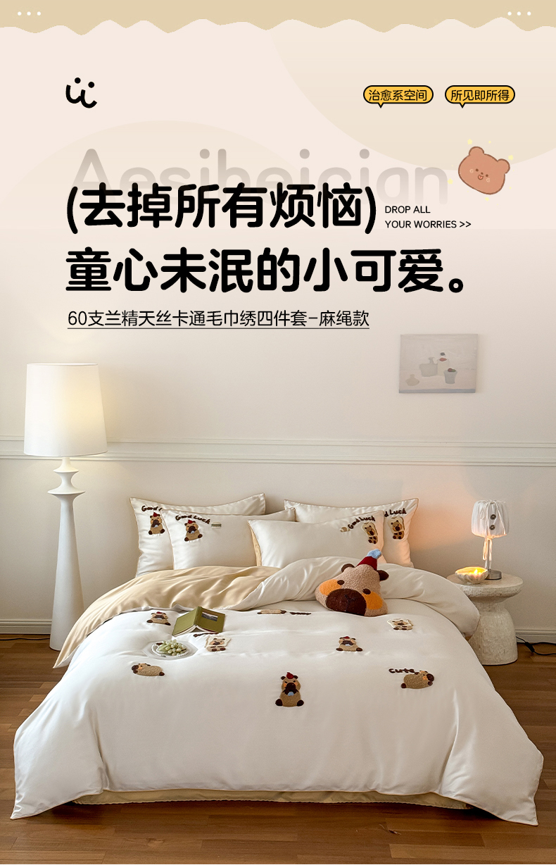 当前位置: 91家纺网 > 商品网购 > 床品套件 > 四件套 > 莱赛尔四件套 > FORTWO家纺原创设计(FOR TWO家纺) 2025新款60支兰精天丝卡通毛巾绣四件套-麻绳款 汉堡熊