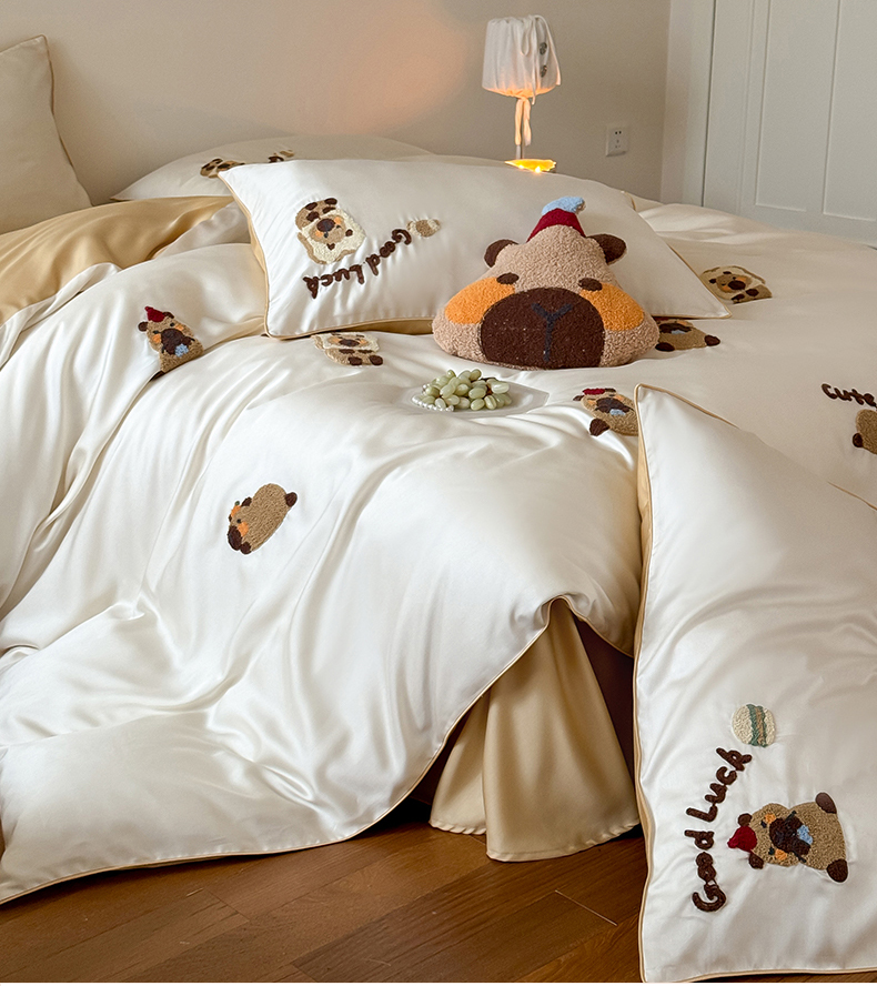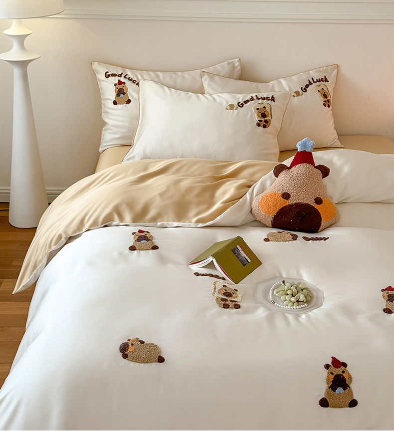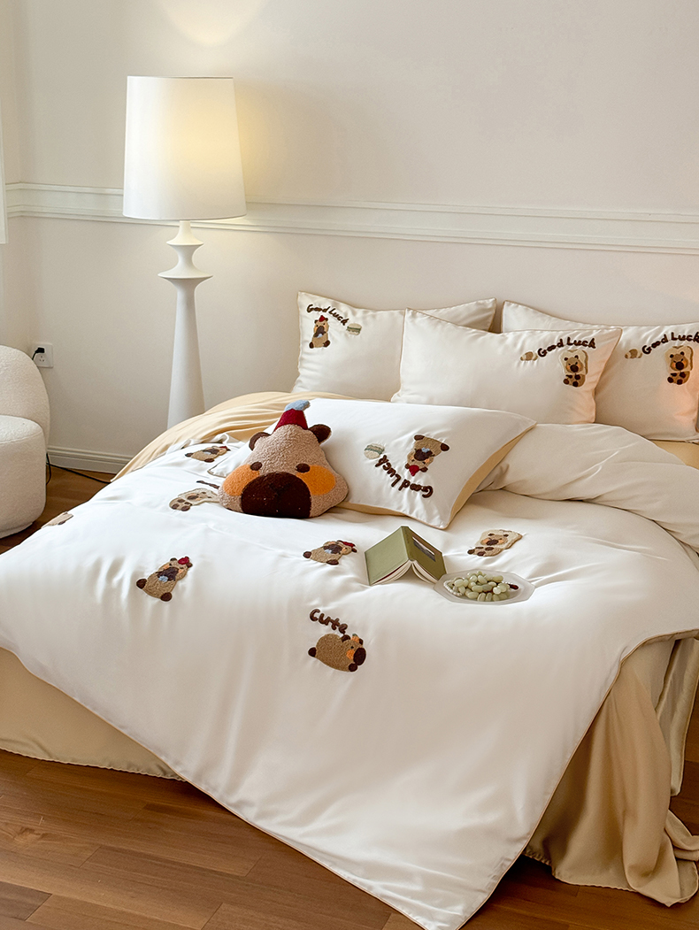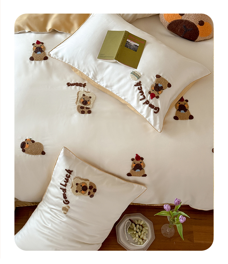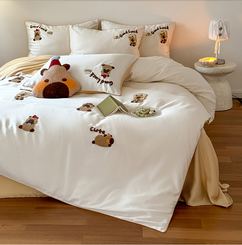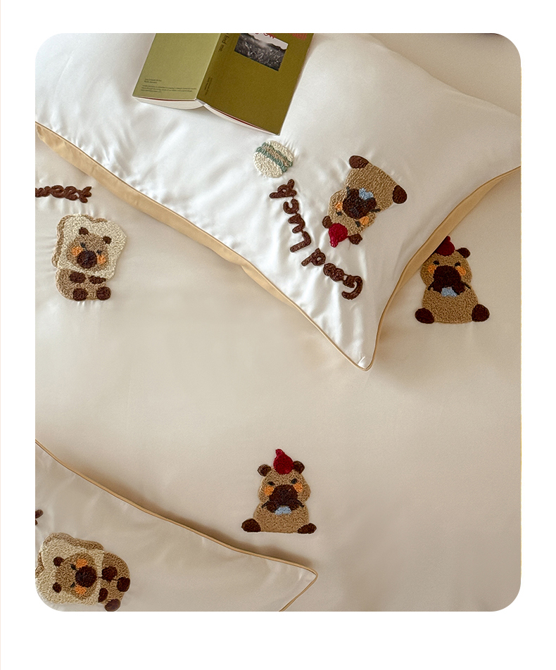 当前位置: 91家纺网 > 商品网购 > 床品套件 > 四件套 > 莱赛尔四件套 > FORTWO家纺原创设计(FOR TWO家纺) 2025新款60支兰精天丝卡通毛巾绣四件套-麻绳款 汉堡熊