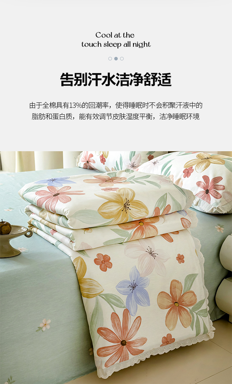 商品名称:2025新款全棉花边大豆夏被四件套 云裳花谷