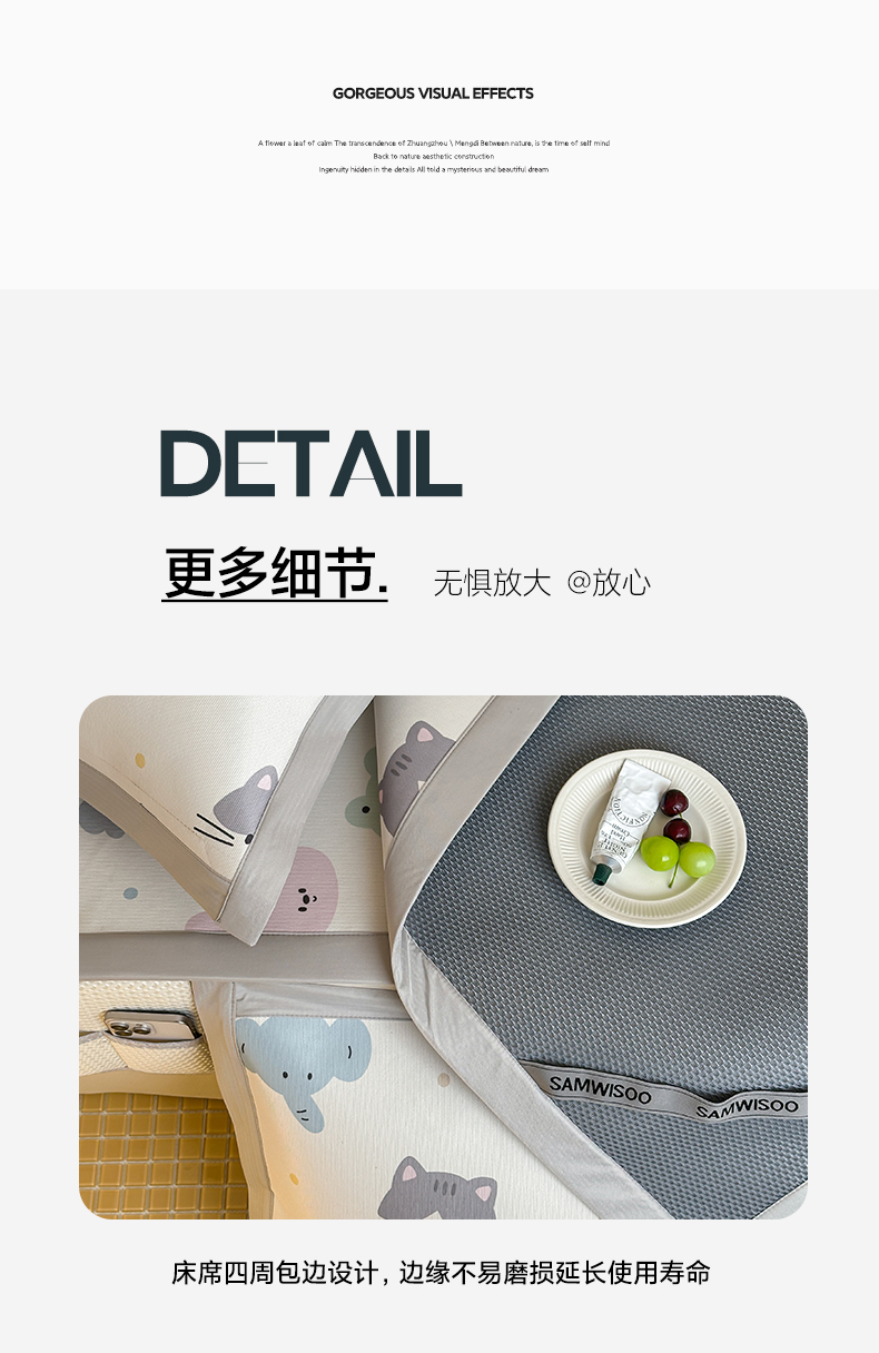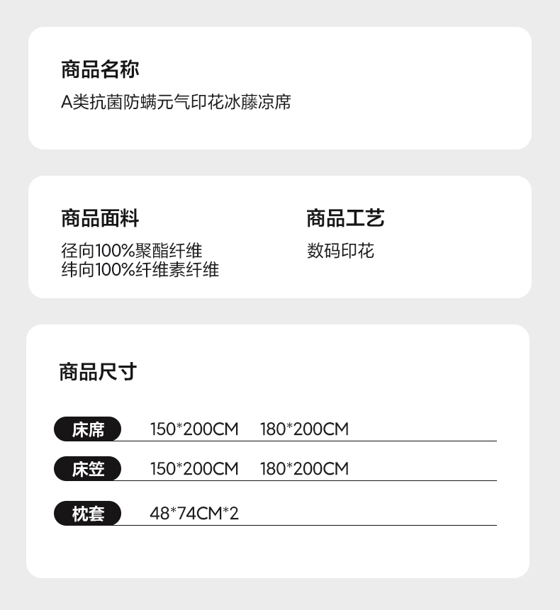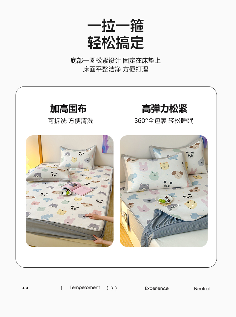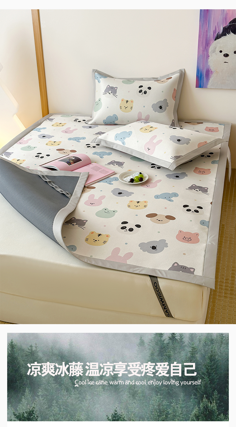 商品名称:三味舒屋 2025新款抗菌防螨900D高端养生印花冰藤凉席 多可爱 床笠款