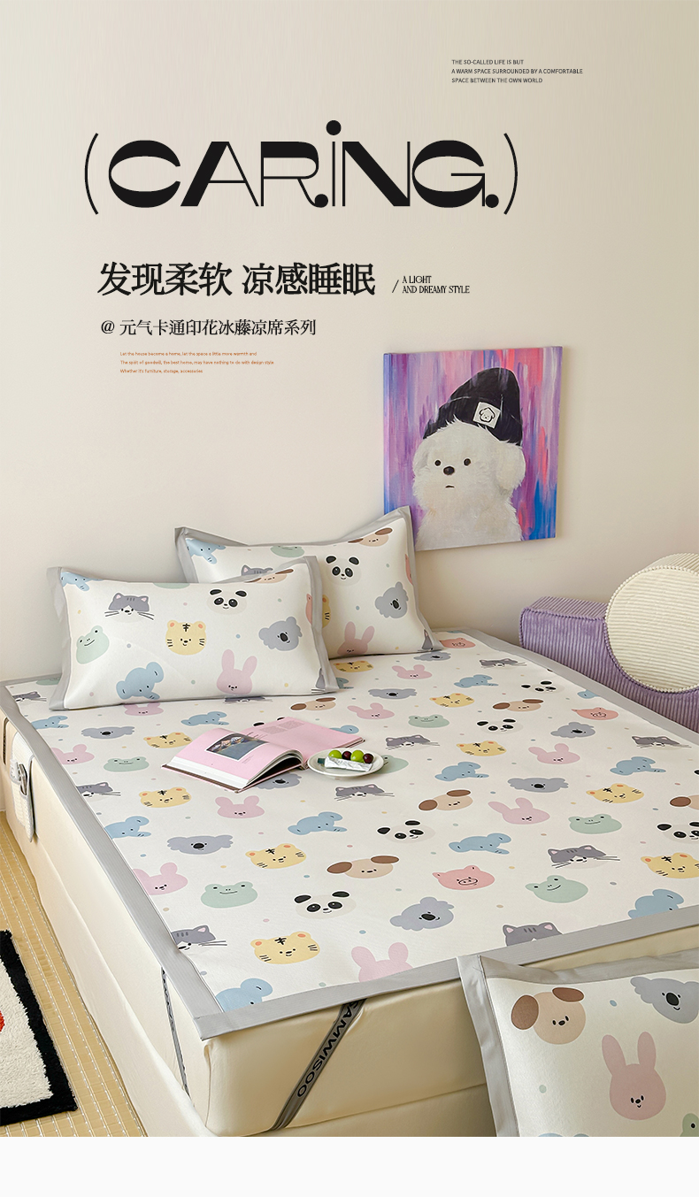 三味舒屋 2025新款抗菌防螨900D高端养生印花冰藤凉席 多可爱 床笠款