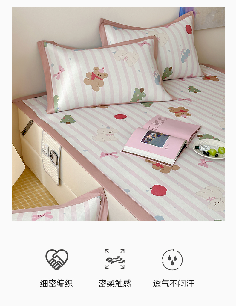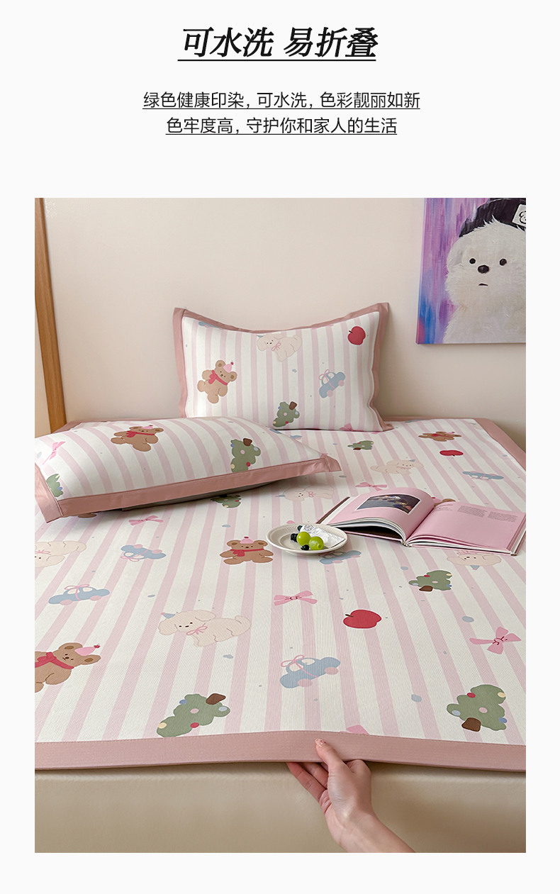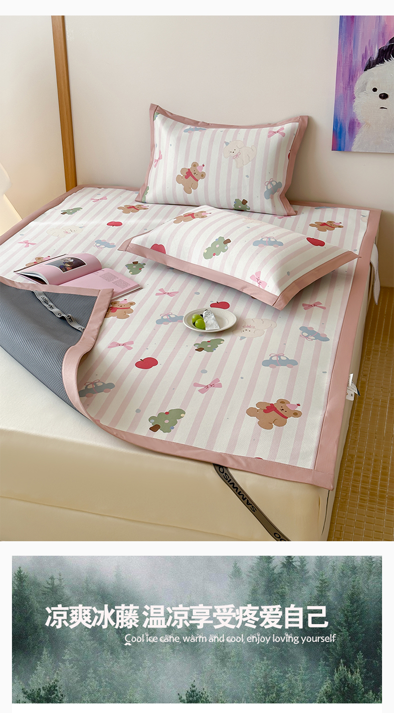 商品名称:三味舒屋 2025新款抗菌防螨900D高端养生印花冰藤凉席 小熊心事 床席款