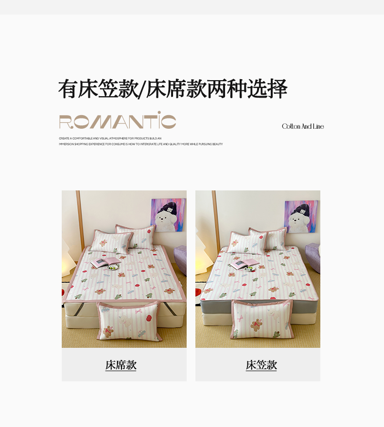 (总)三味舒屋 2025新款奶油系列卡通大版印花冰藤凉席席子,奶油马卡龙-床席款,奶油猪猪熊-床席款,奶油马卡龙-床笠款,奶油猪猪熊-床笠款