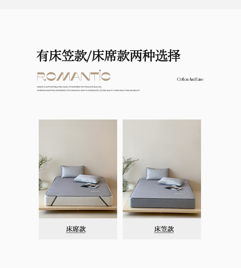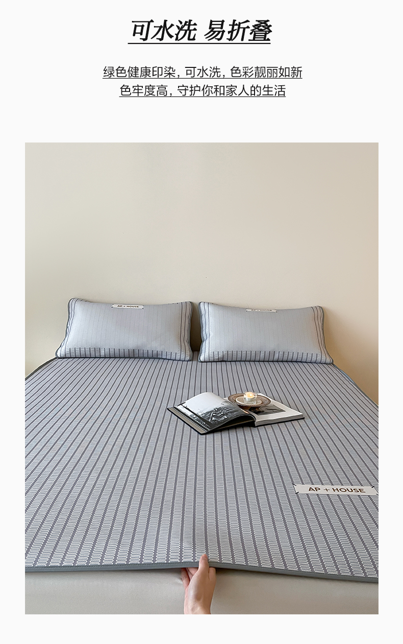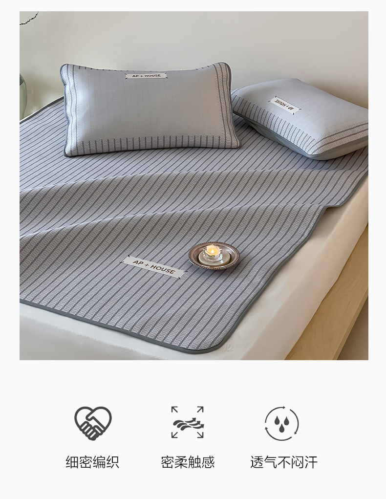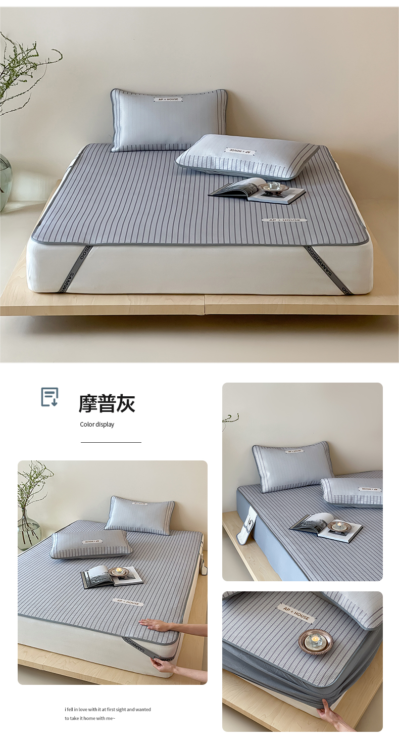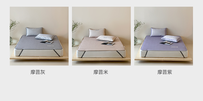 商品名称:三味舒屋 2025新款时尚简约小年轻专属900D高端养生印花冰藤凉席 摩普灰-床笠款