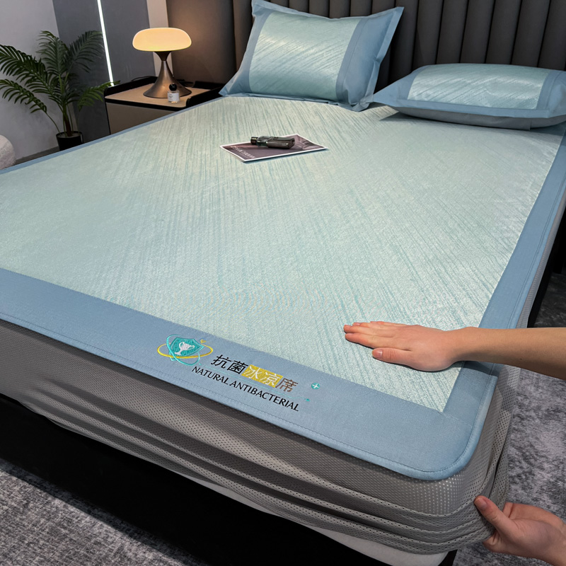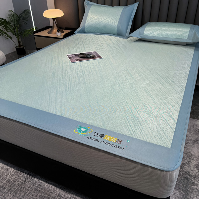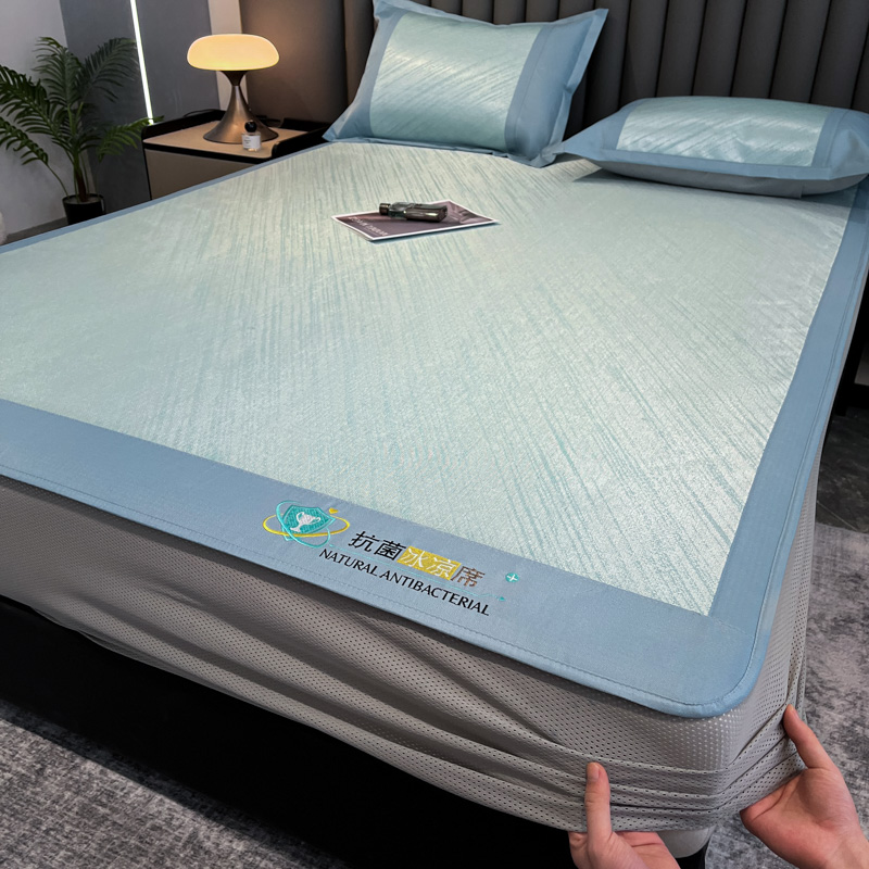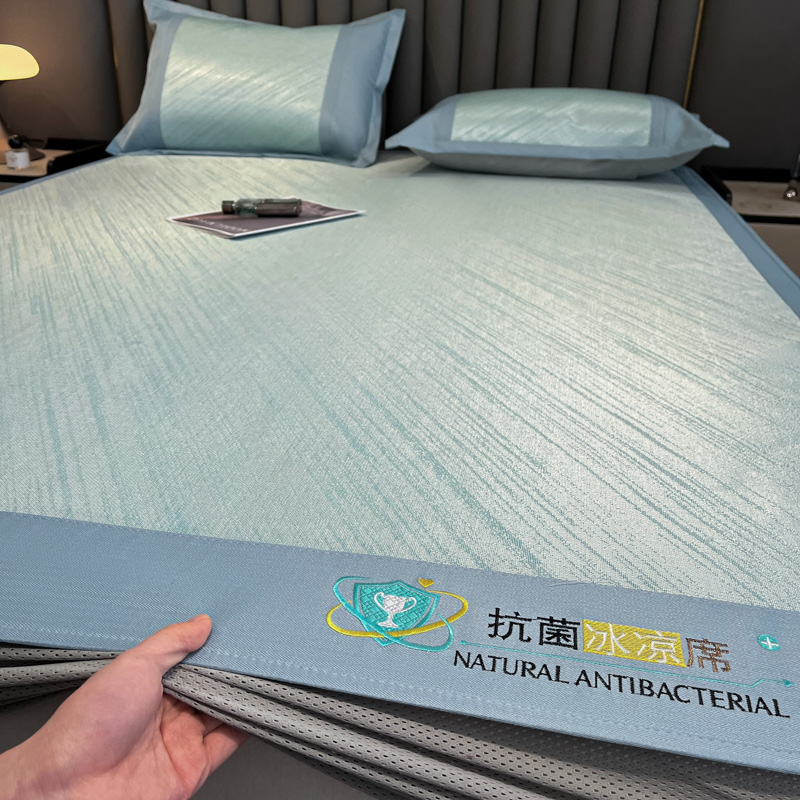 (总)阿亮家居 2025新款A类母婴级1800D碳光小鹿冰丝席凉席,宾利蓝,冰川灰,繁星绿,山茶粉,香槟金
