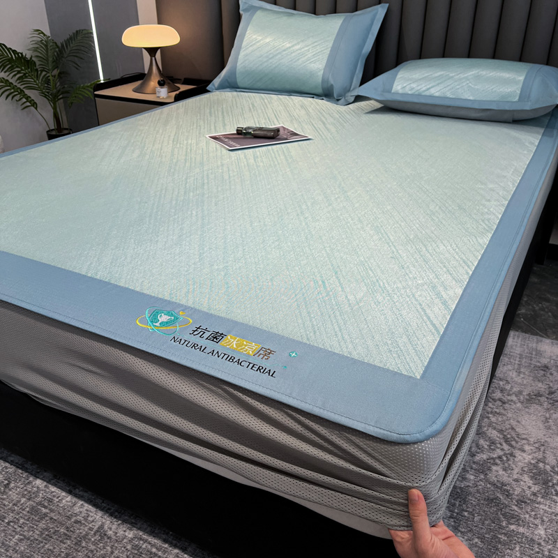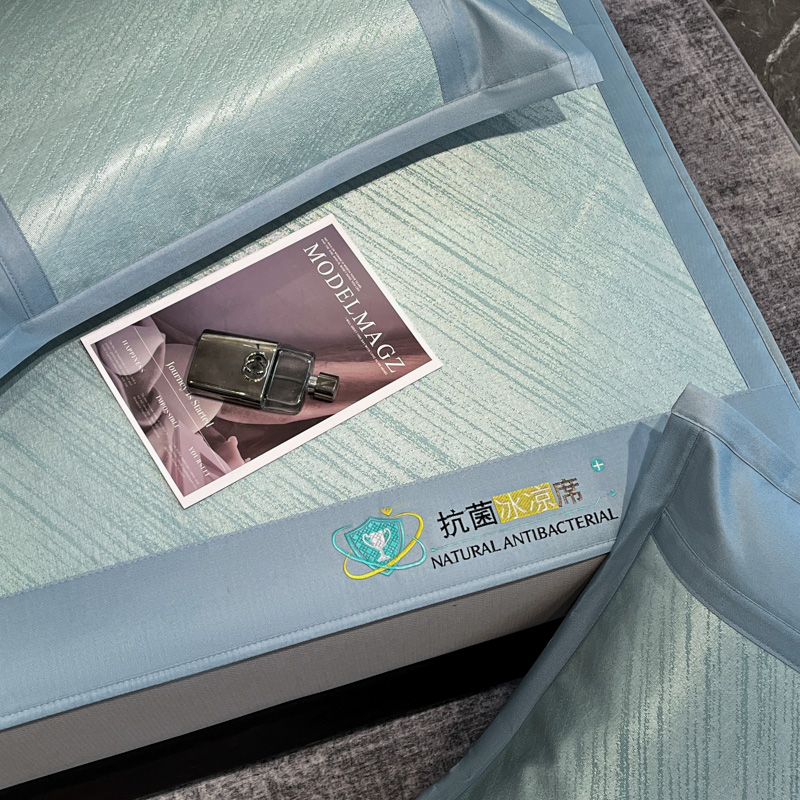 商品名称:阿亮家居 2025新款凉席冰丝席三明治宽包边刺绣款粗冰丝凉席流星雨蓝(床笠款)