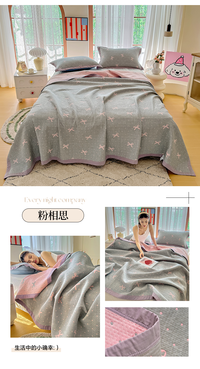 • 91家纺网 家纺一手货源 找家纺 棠薇家纺2025新款简约风多功能纱布盖毯纱布毯子毛巾被床盖沙发巾单毯枕巾枕套三件套 粉相思