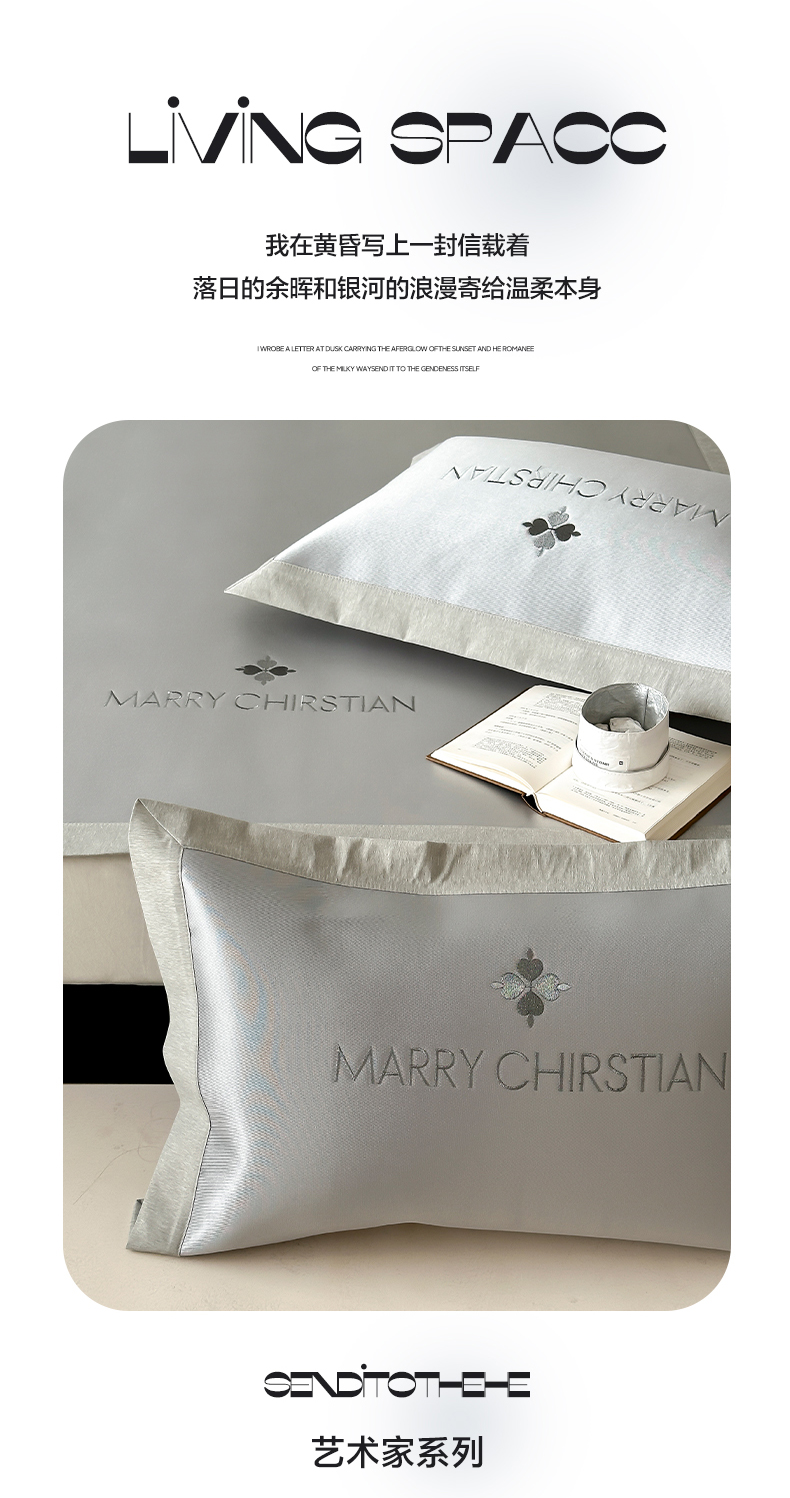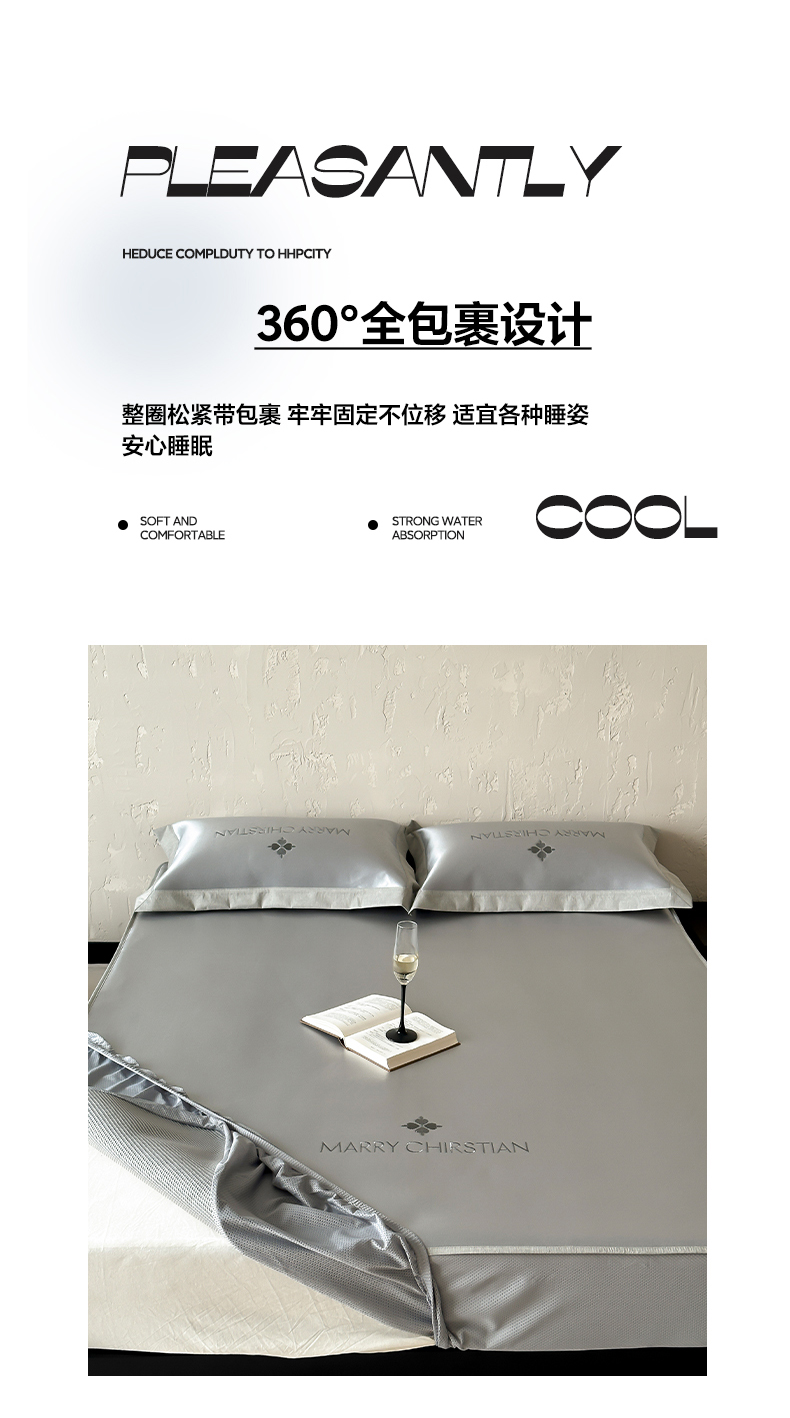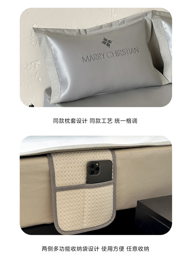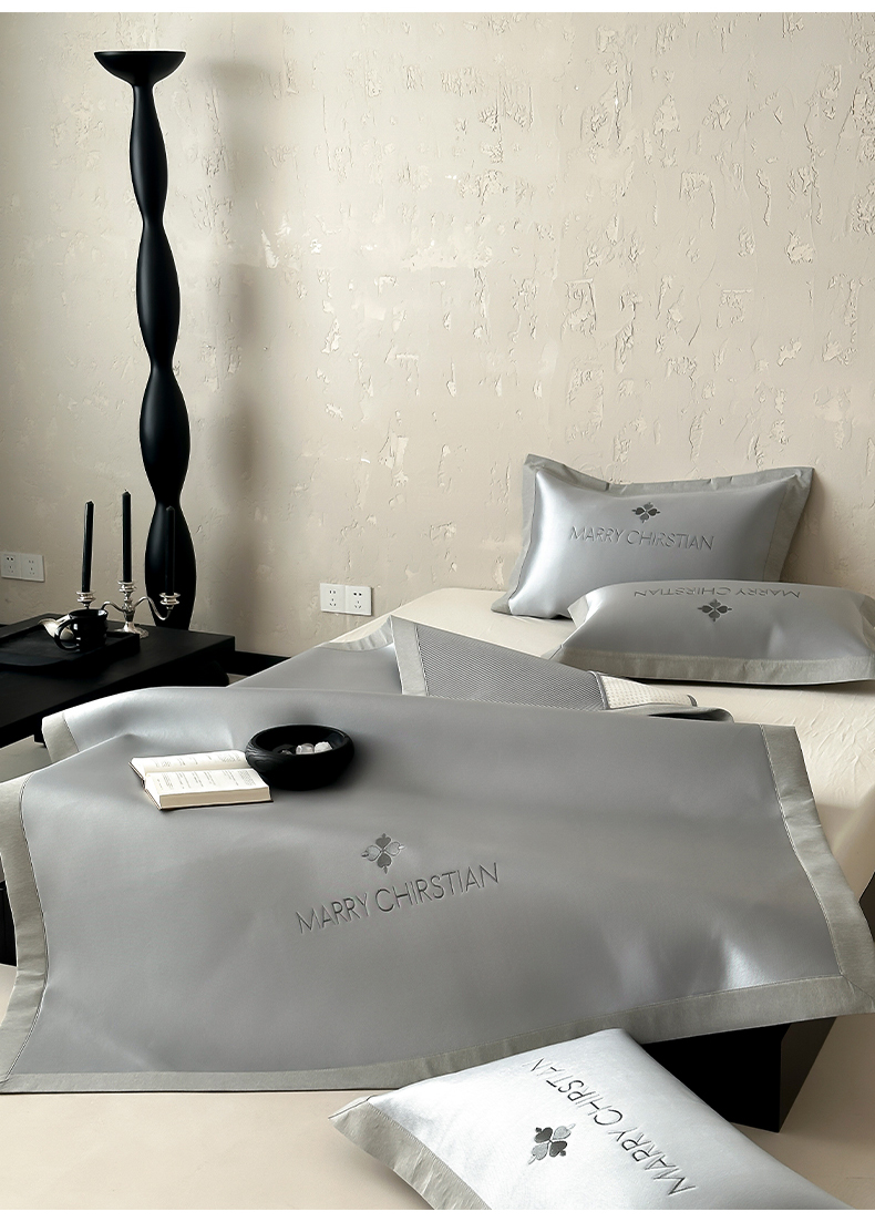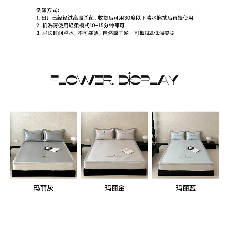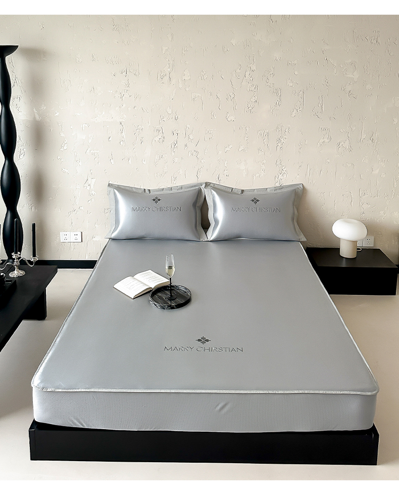 商品名称:三味舒屋 2025新款凉感抗菌防螨印花冰丝养生席玛丽刺绣系列 玛丽灰 床笠