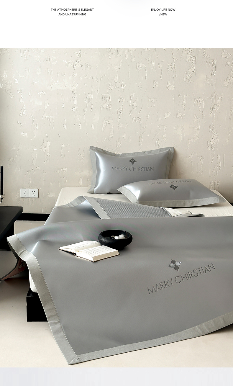 三味舒屋 2025新款凉感抗菌防螨印花冰丝养生席玛丽刺绣系列 玛丽灰 床笠