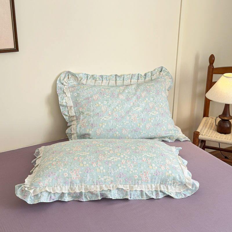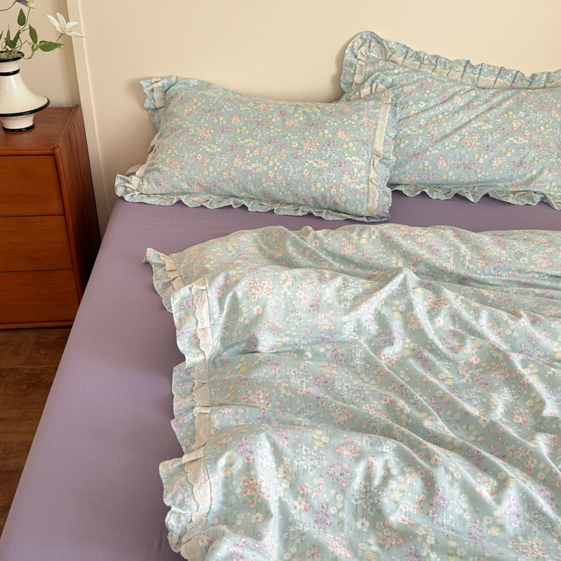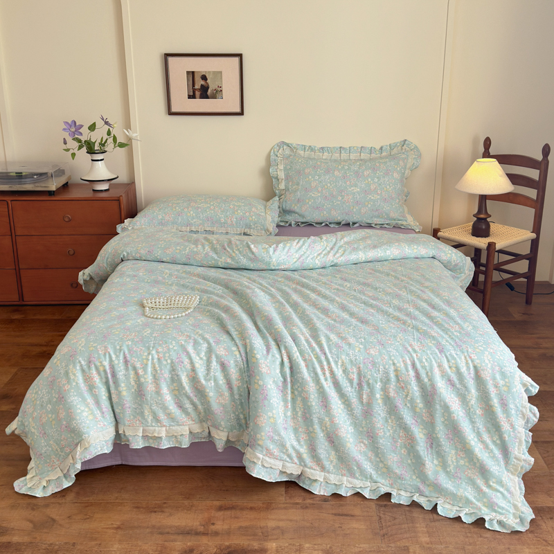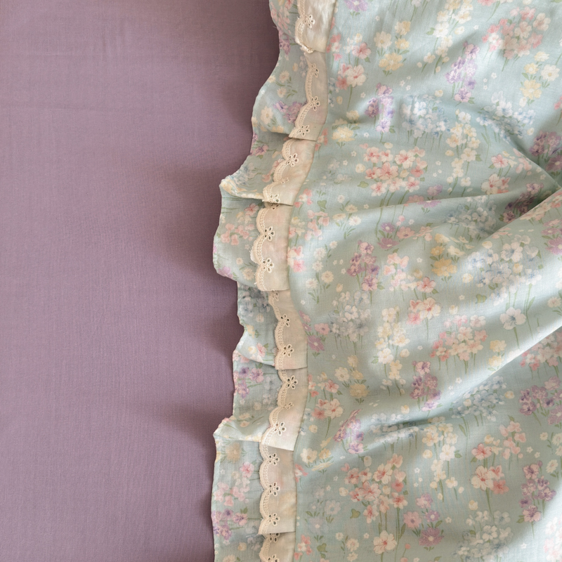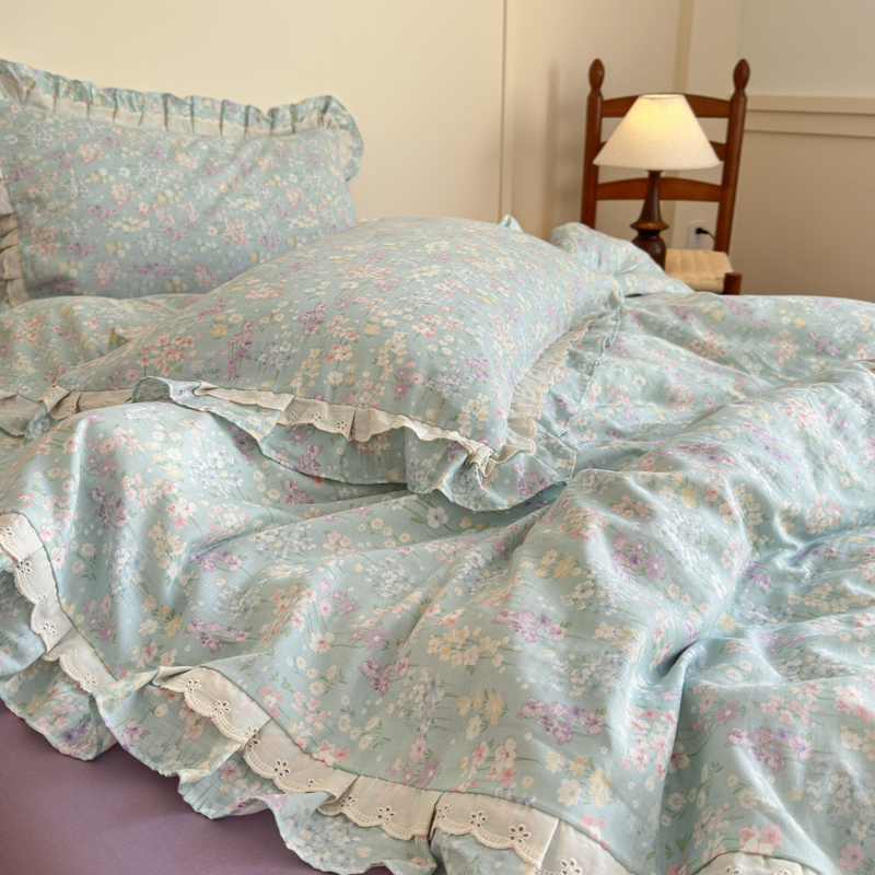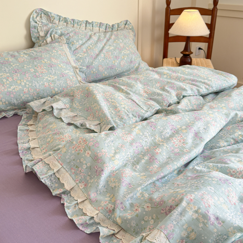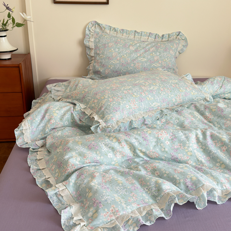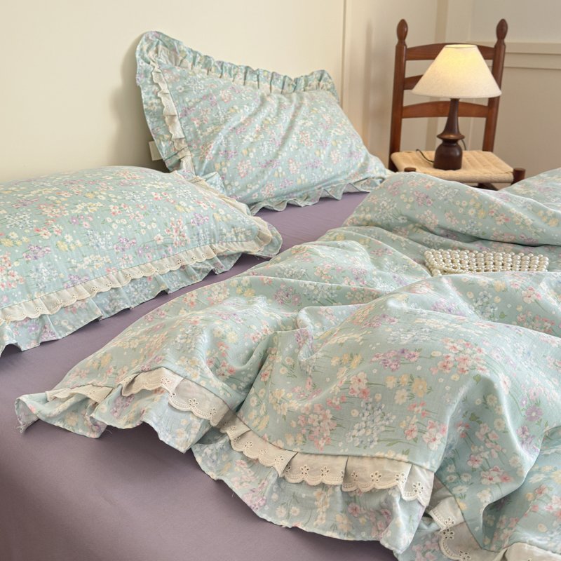 当前位置: 91家纺网 > 商品网购 > 床品套件 > 四件套 > 双层纱四件套 > 乐童家纺 2025纯棉A类双层纱双花边工艺小清新四件套 云水瑶