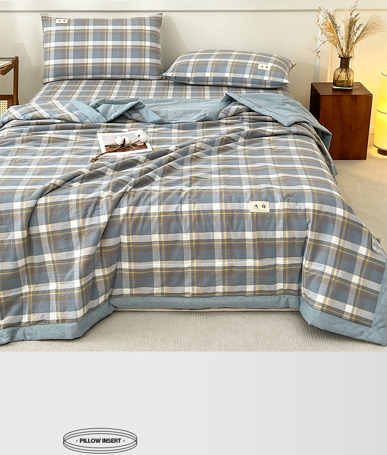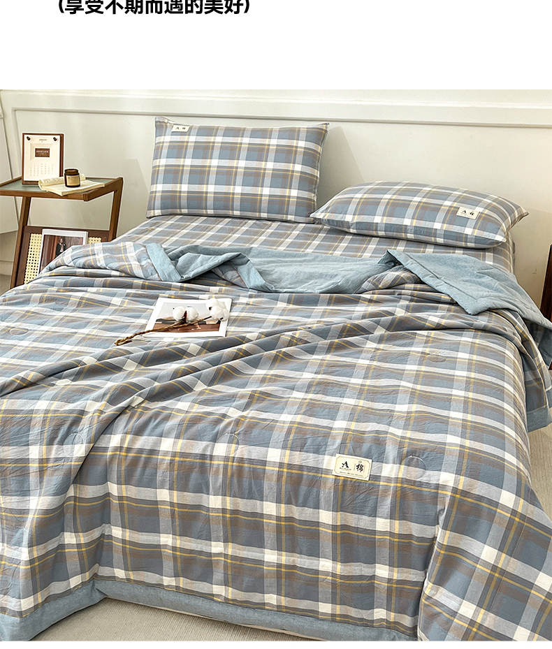 当前位置: 91家纺网 > 商品网购 > 床品套件 > 四件套 > 夏被四件套 > 21度C 2025新款色织全棉夏被四件套 雅格蓝