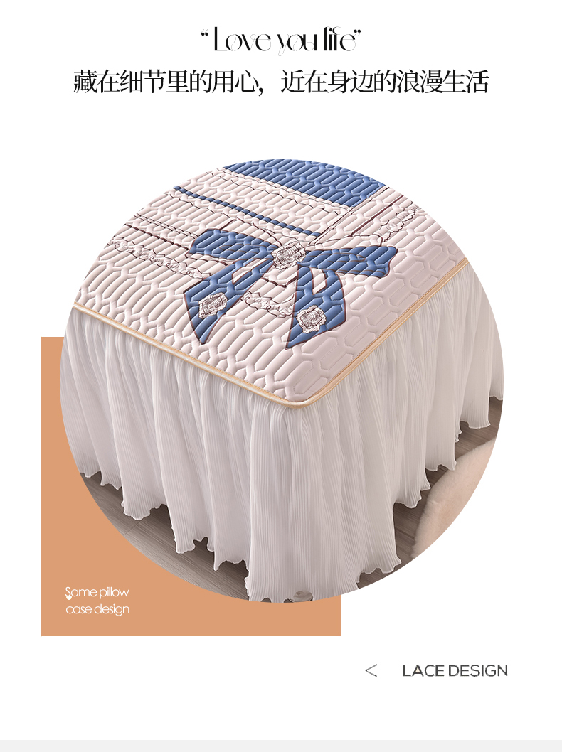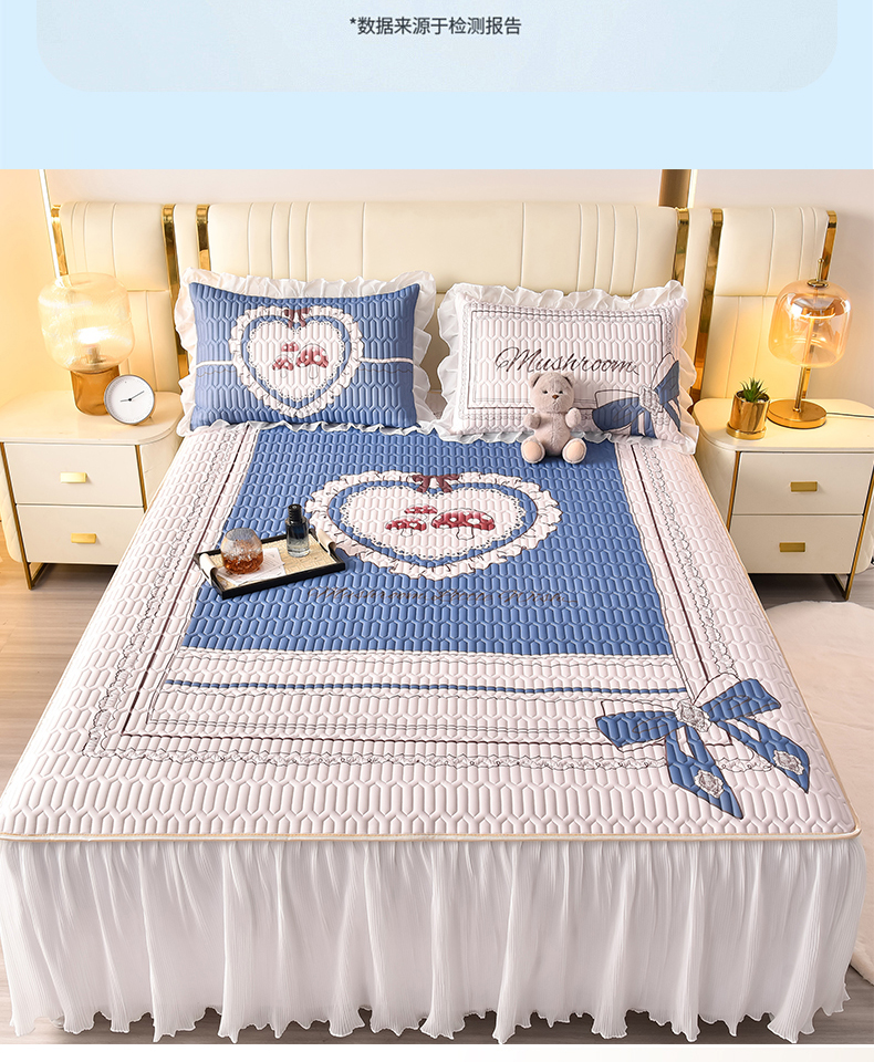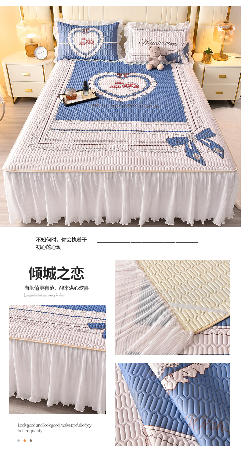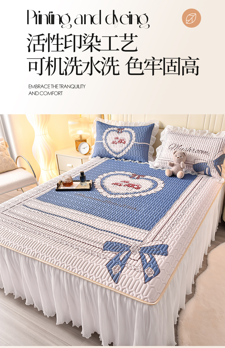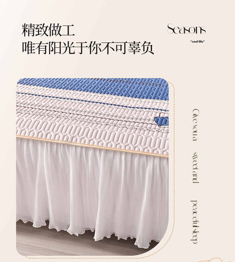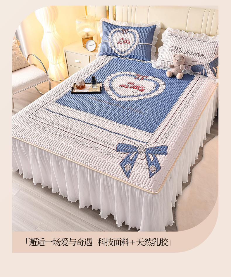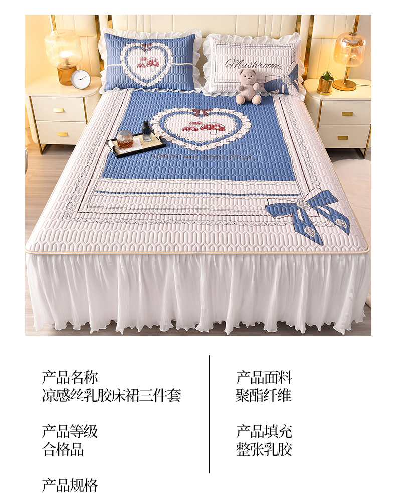 炫拼家纺 2025新款凉感丝印花床裙款乳胶凉席三件套 倾城之恋