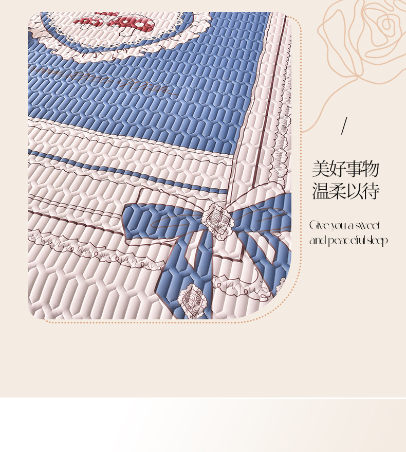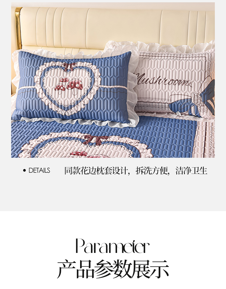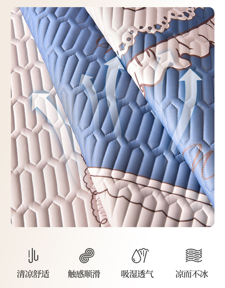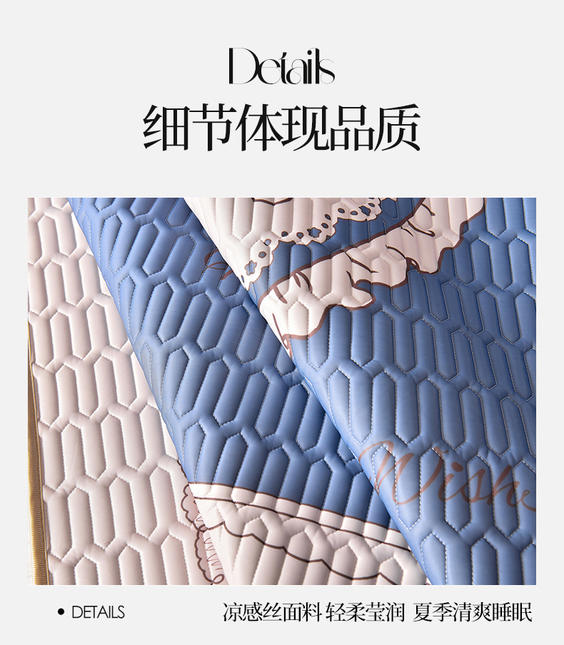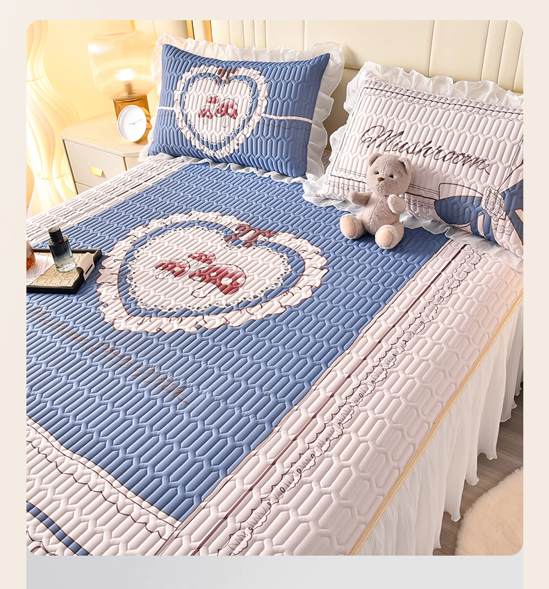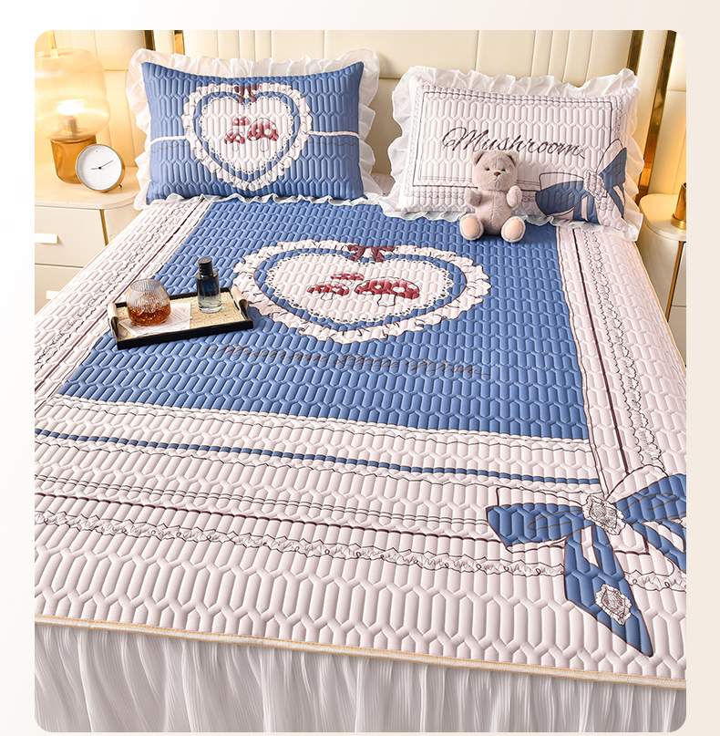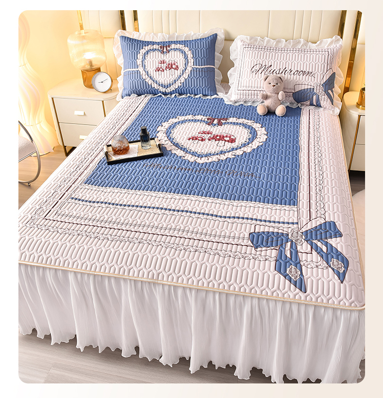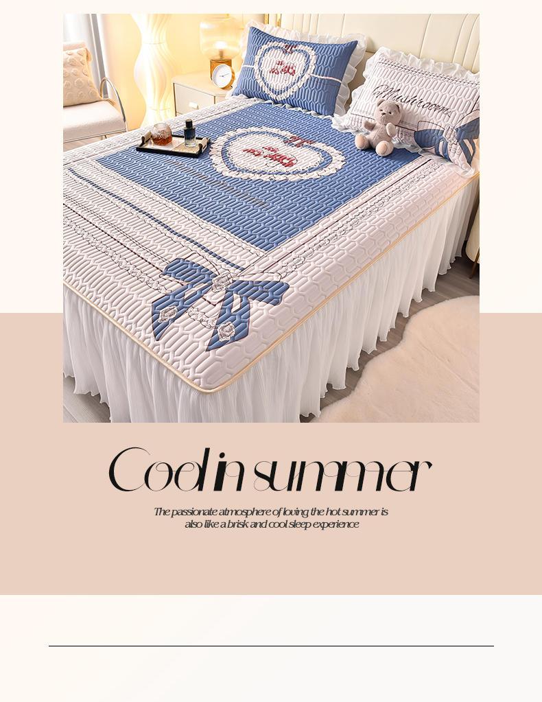 炫拼家纺 2025新款凉感丝印花床裙款乳胶凉席三件套 倾城之恋