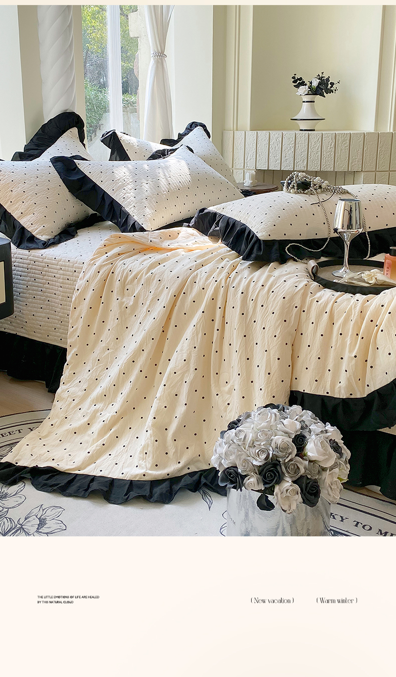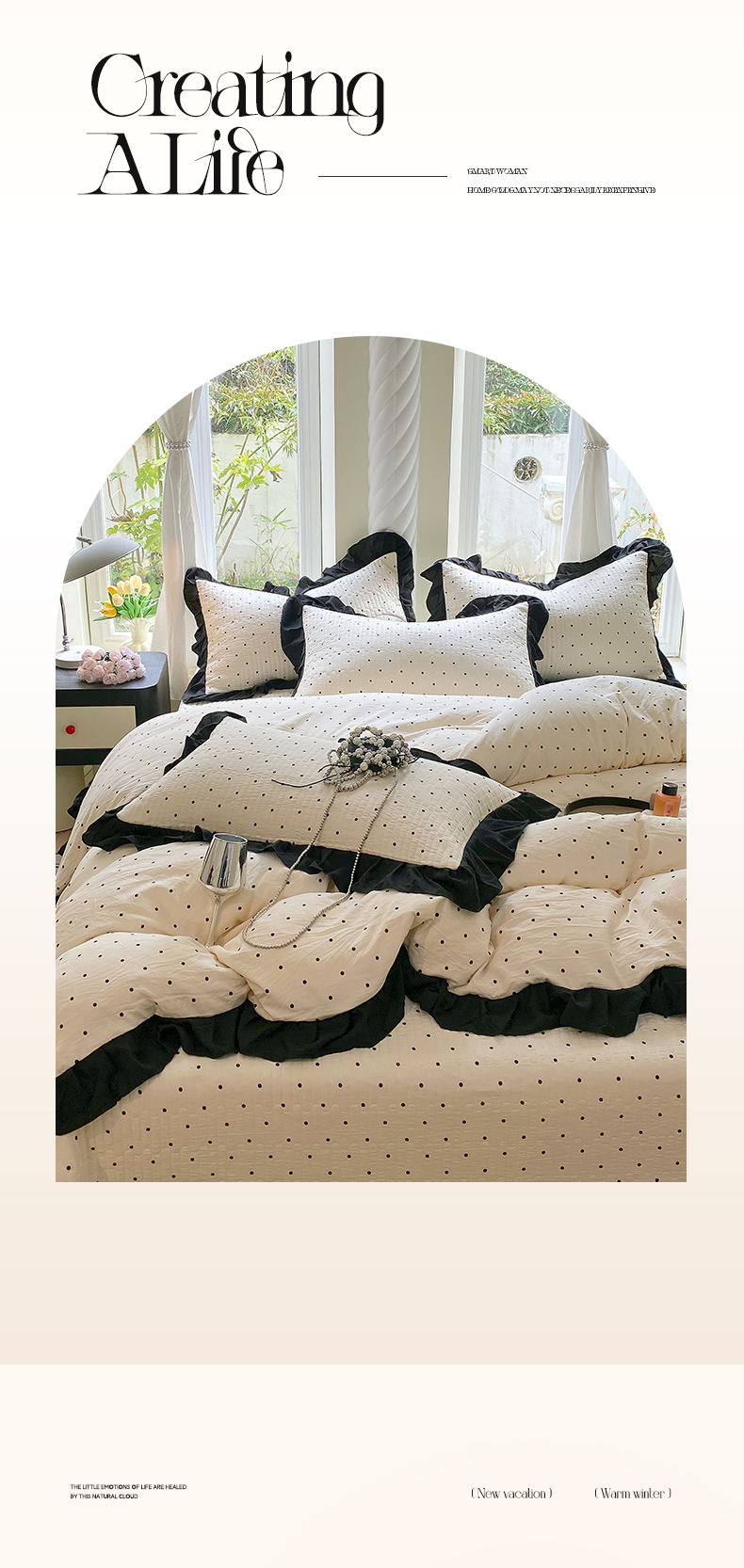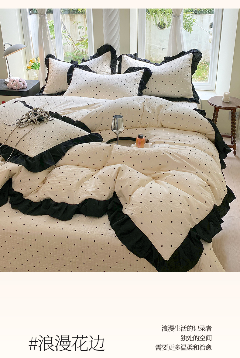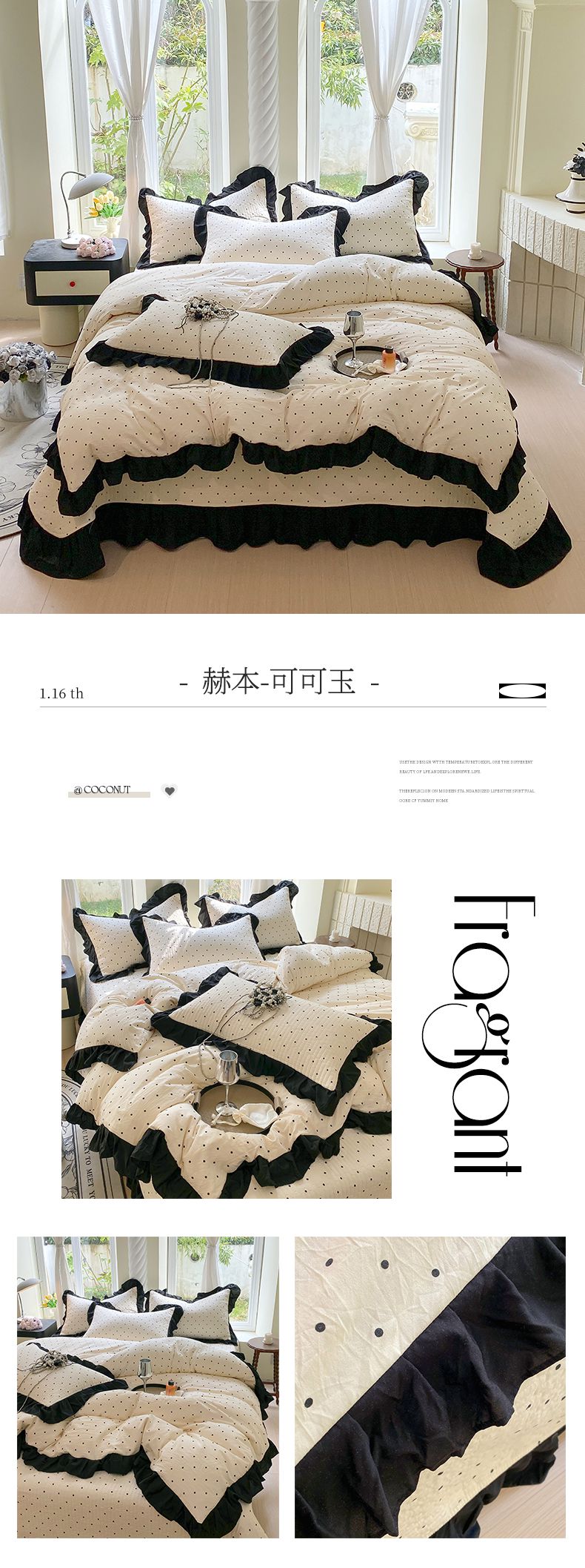 商品名称:八方汇(一户被芯生活馆) 2025新款水洗棉花边夏被款夏凉被空调被床盖四件套 赫本-可可玉