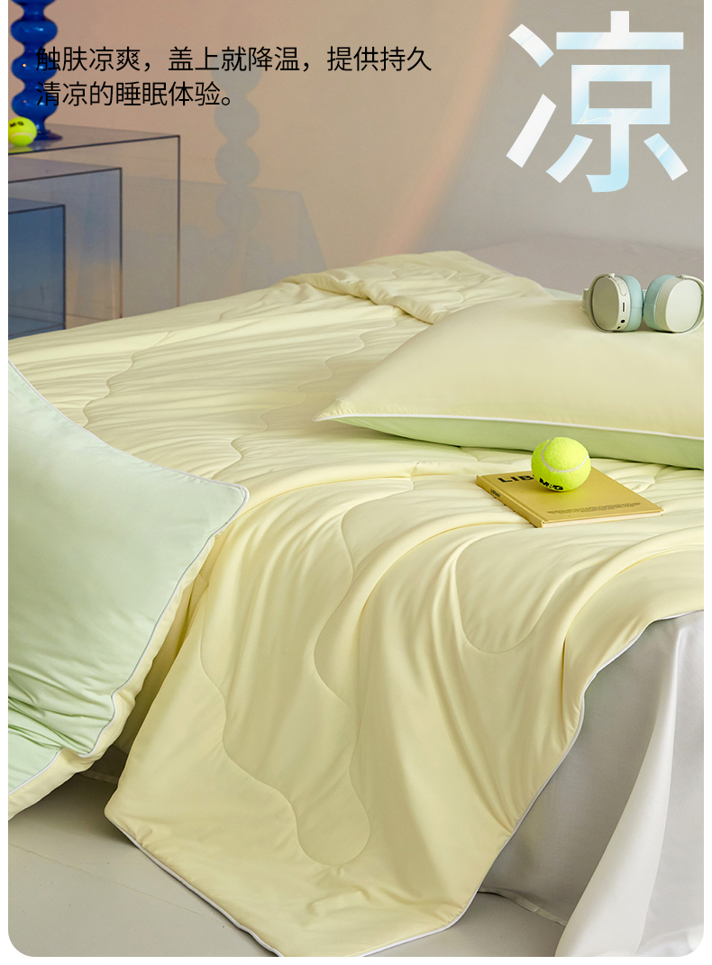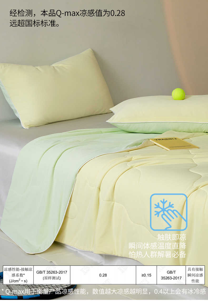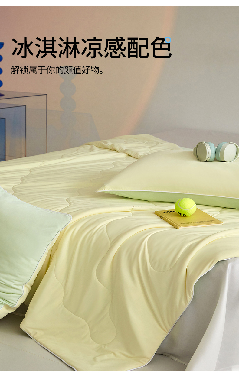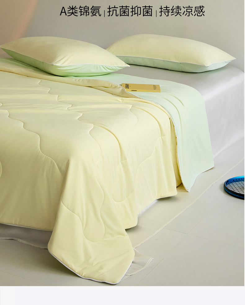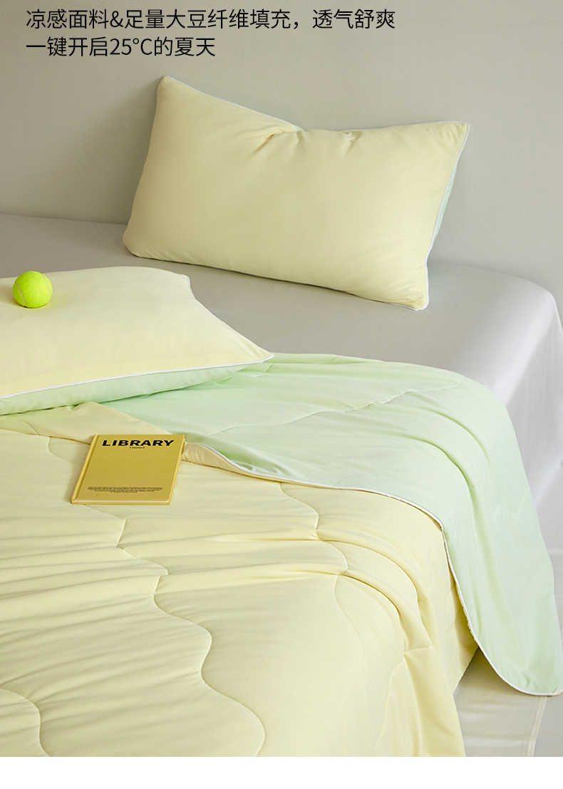 商品名称:头等舱 2025新款4.0版凉感A类锦氨(165克)55大豆抗菌夏被配礼盒 米黄拼浅绿