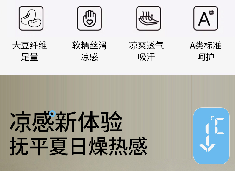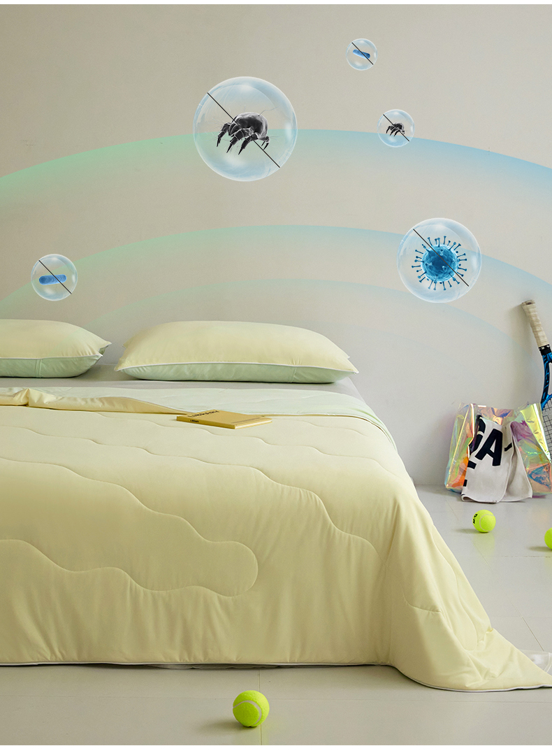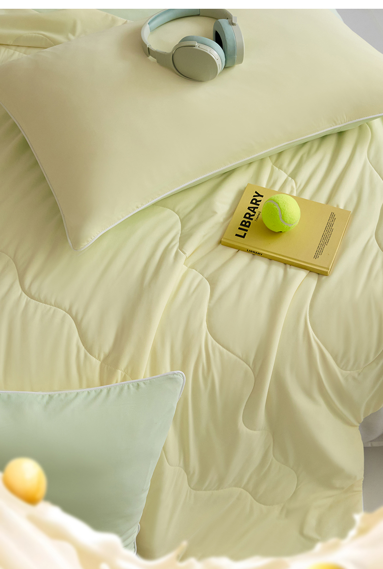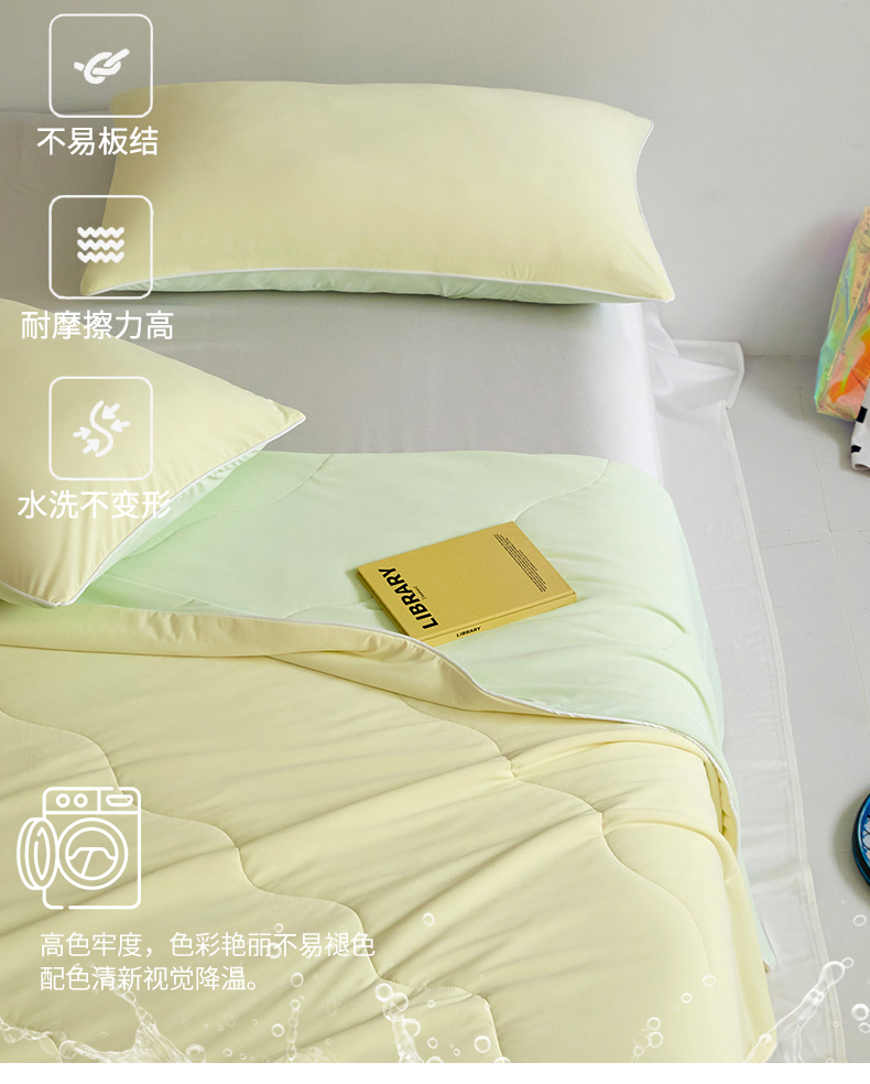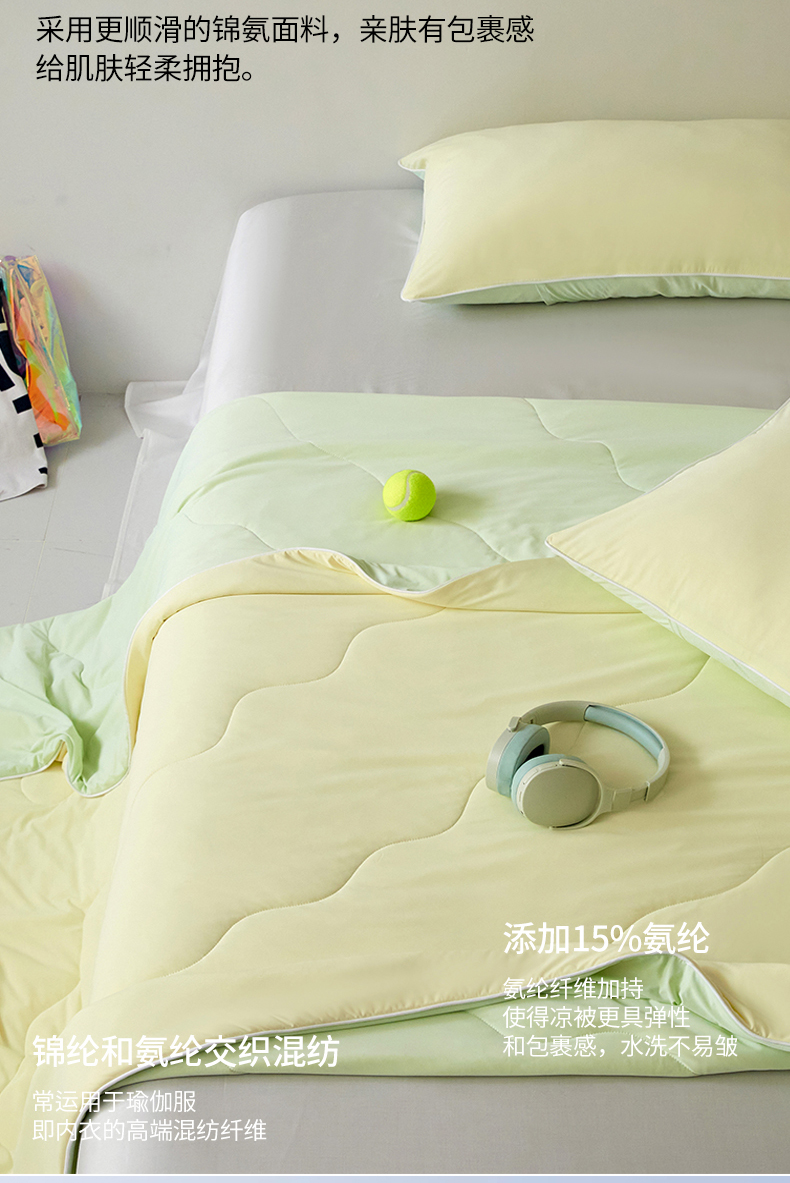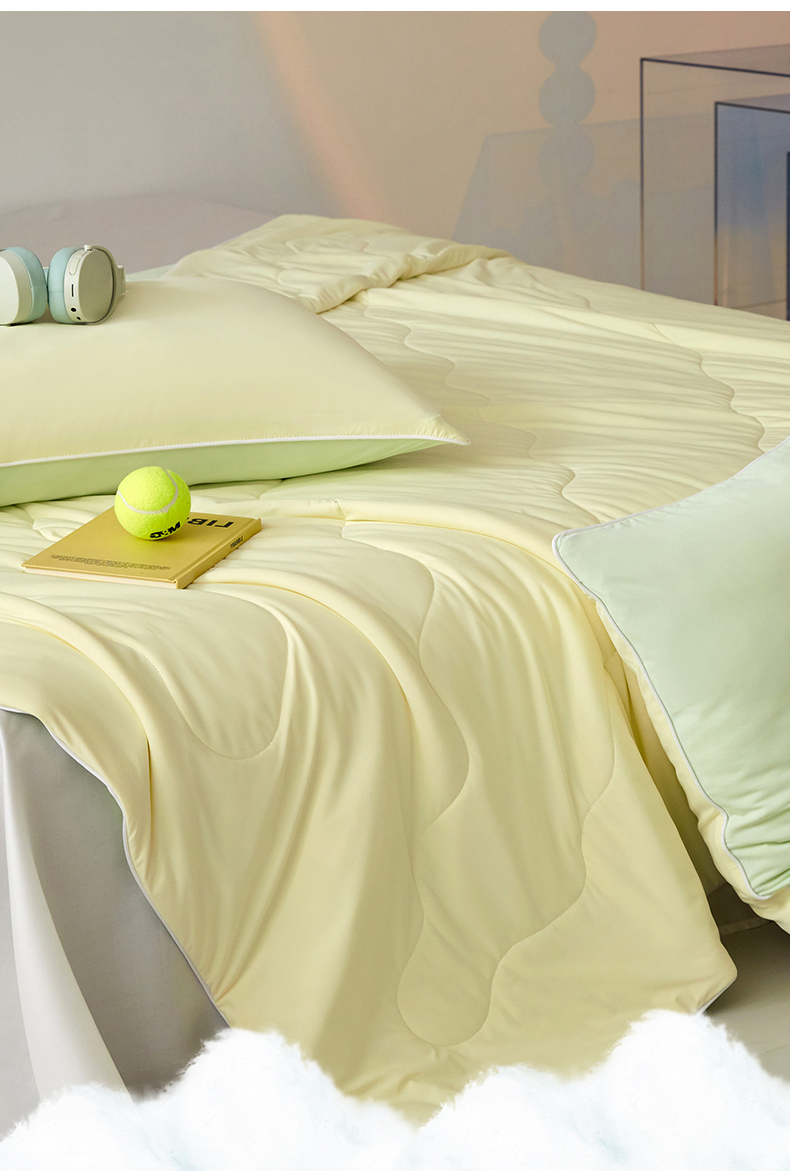 商品名称:头等舱 2025新款4.0版凉感A类锦氨(165克)55大豆抗菌夏被配礼盒 米黄拼浅绿