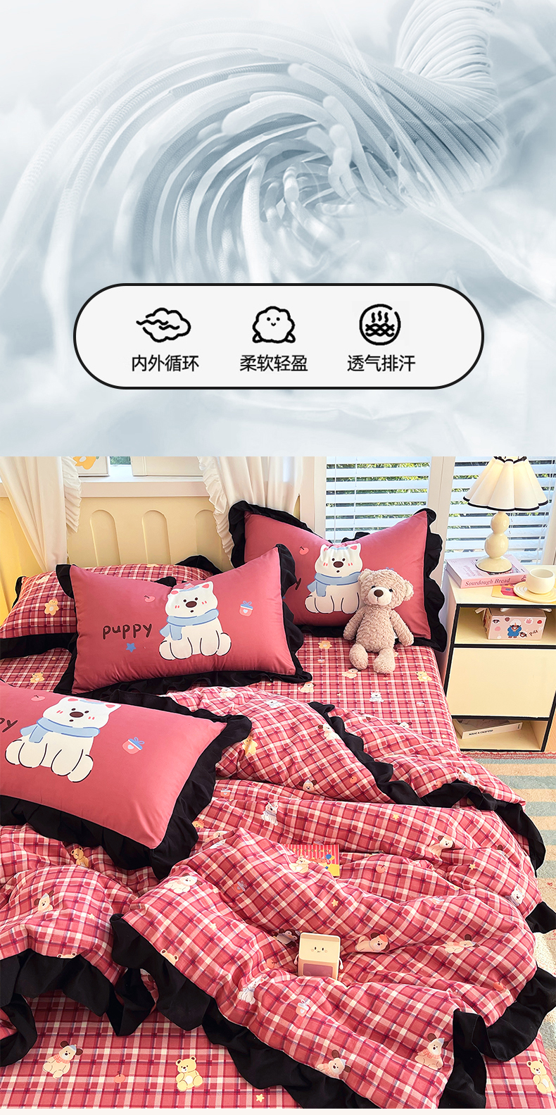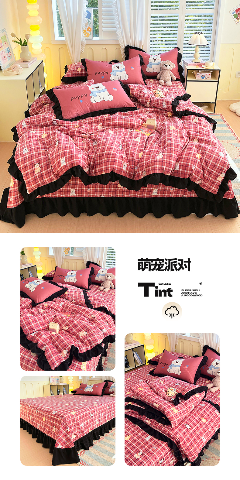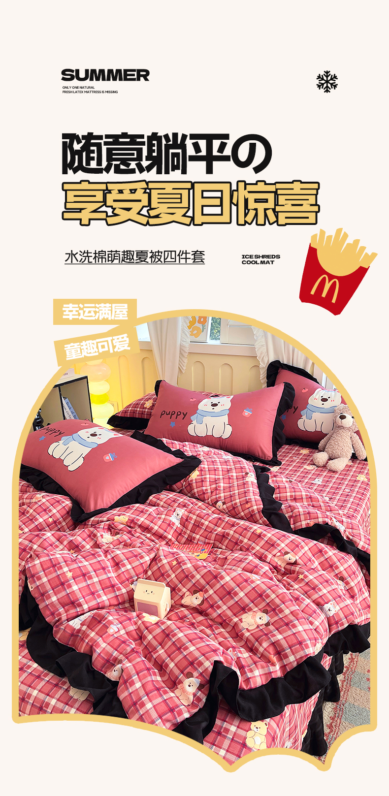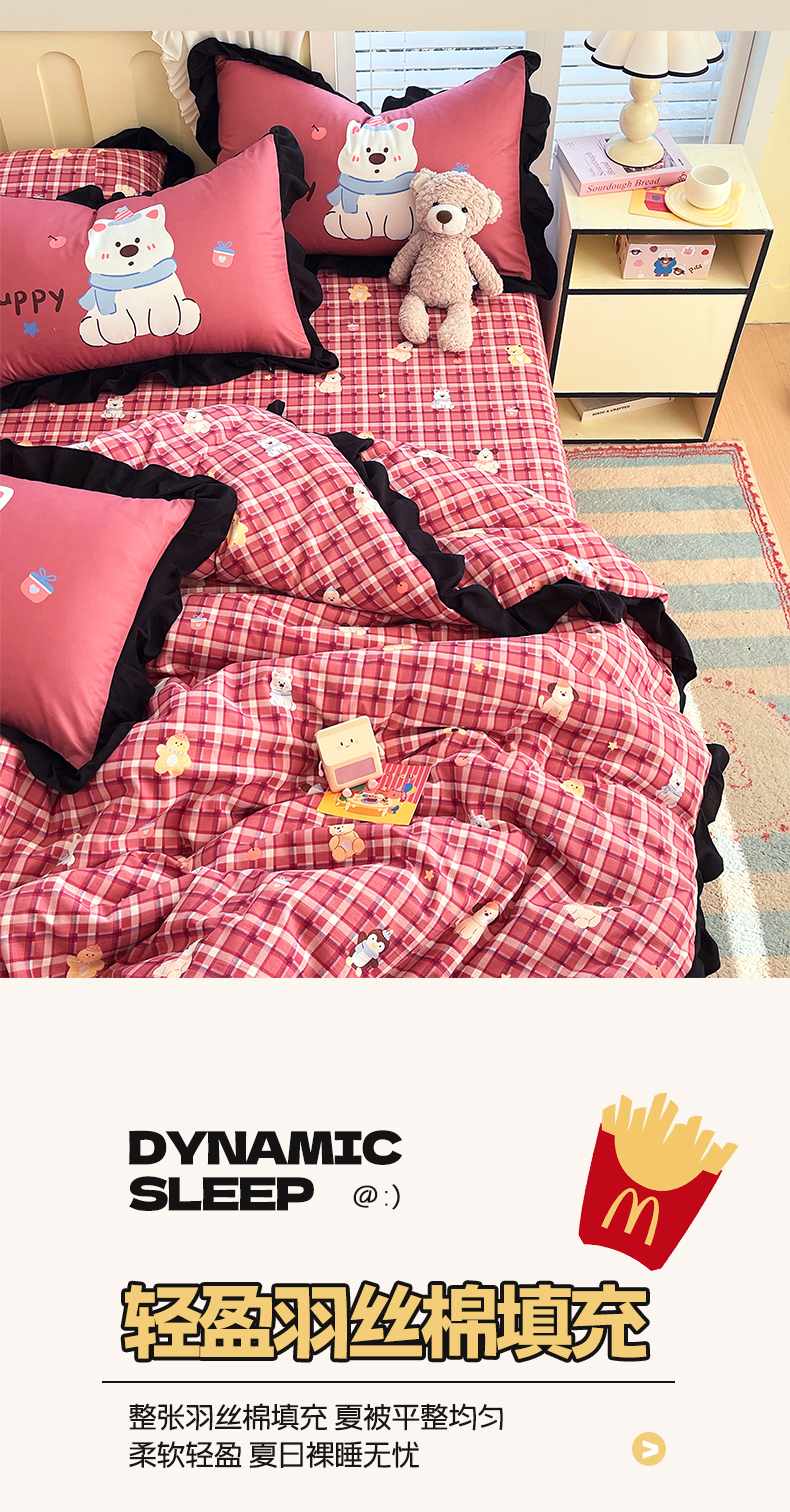 商品名称:慕希2025新款水洗棉萌趣夏被夏凉被空调被四件套 萌宠派对