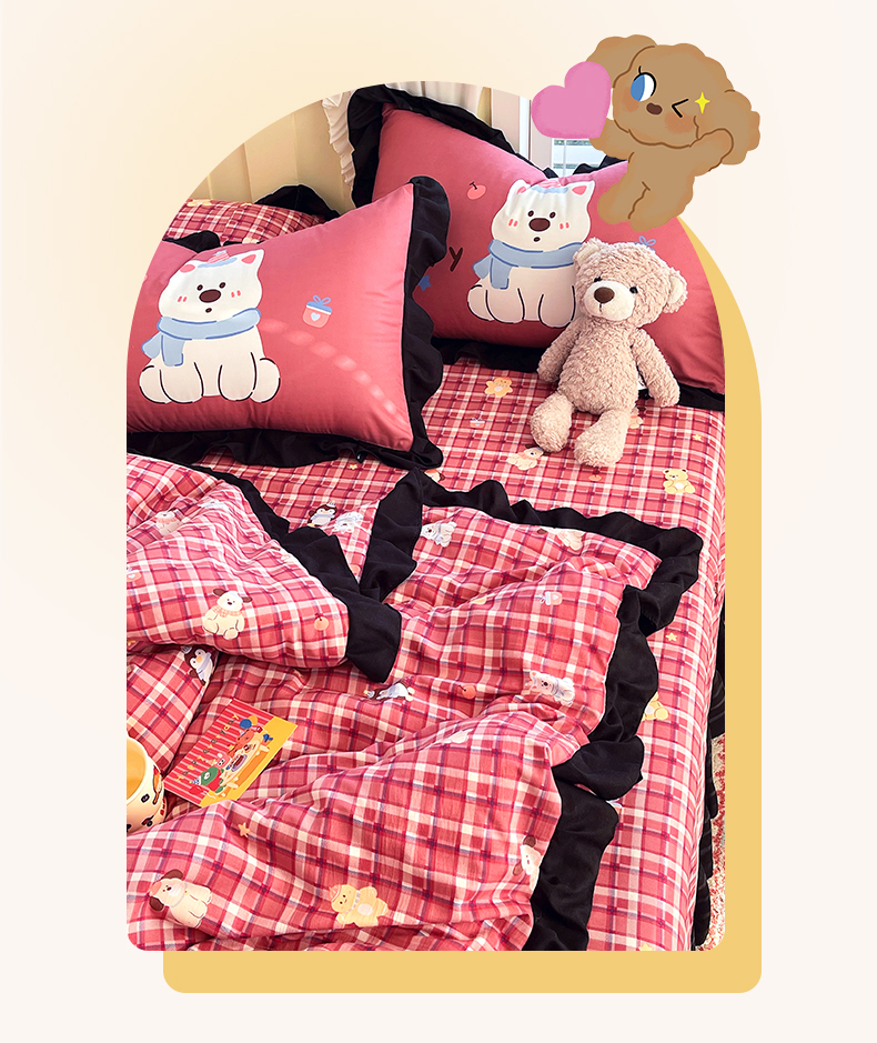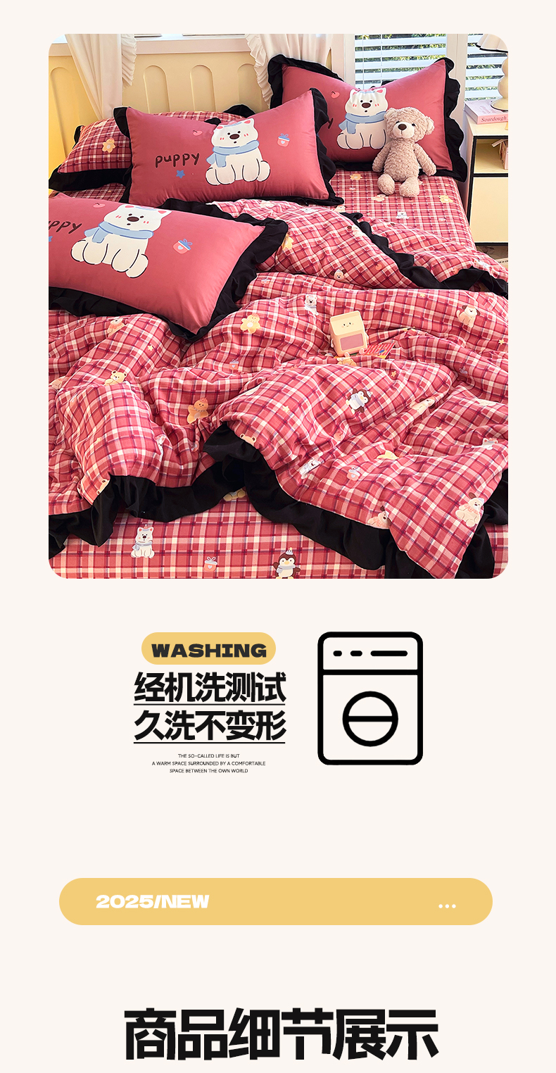 (总)慕希 2025新款水洗棉花边夹棉床盖款四件套,赫本-爱心白,赫本-蝴蝶结粉,赫本-可可玉,赫本-奶味蓝,赫本-柔光蓝,赫本-奶油白