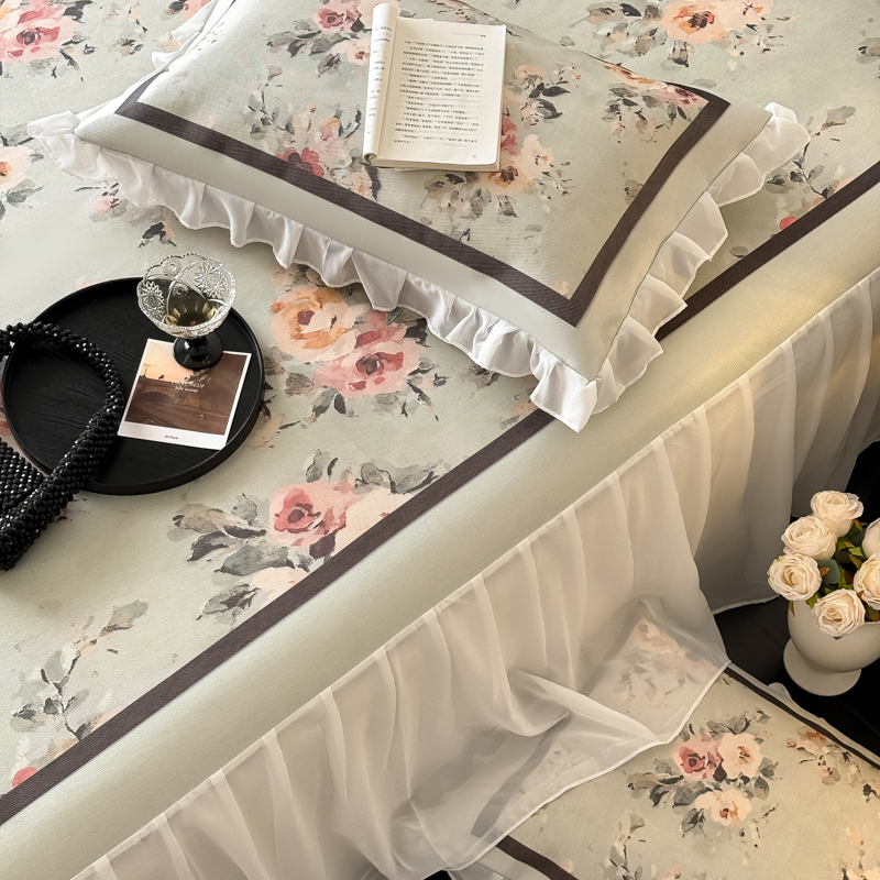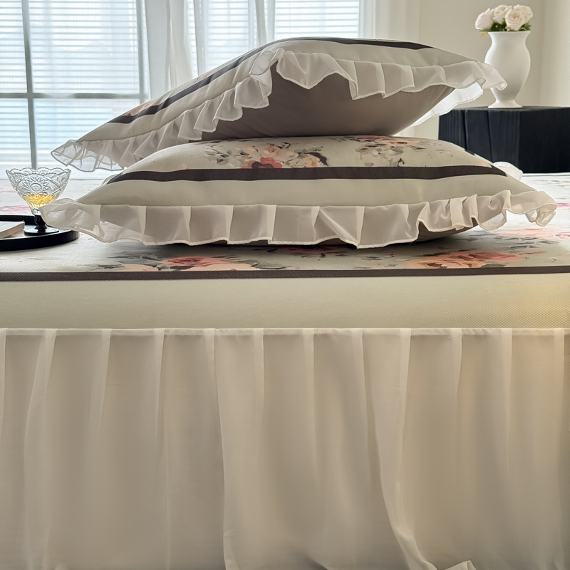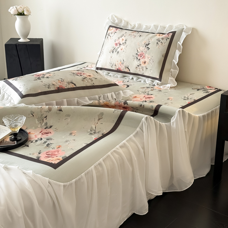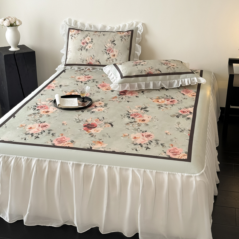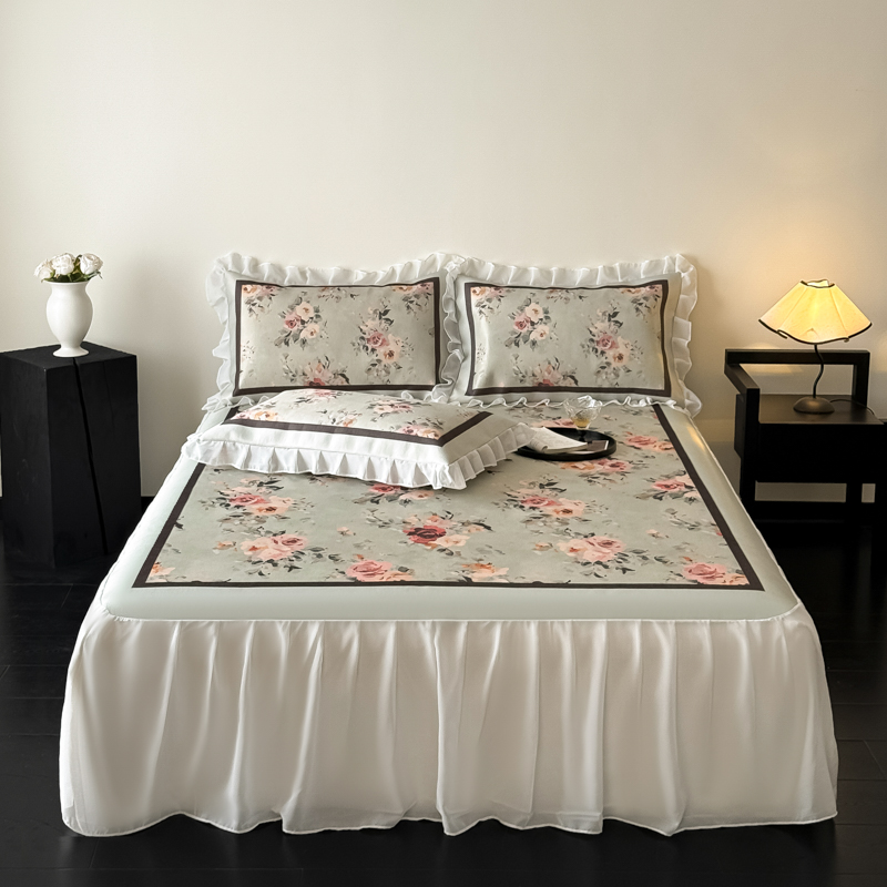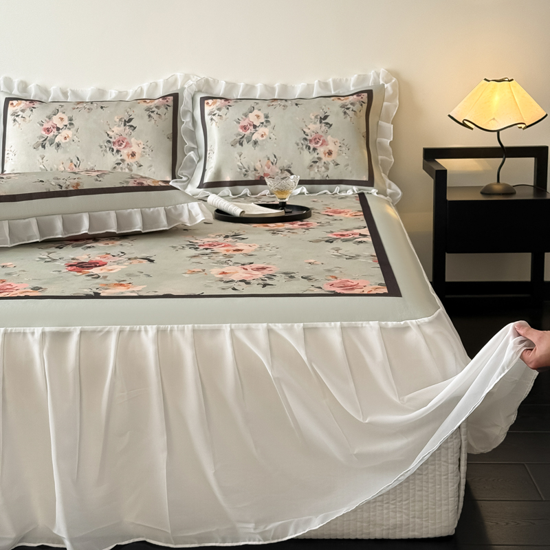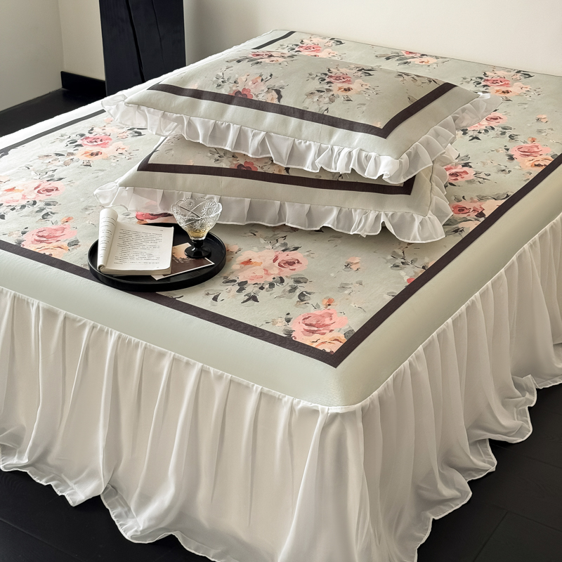 懒猫家纺 2025春夏新款高精密800D数码印花冰丝雪纺床裙款凉席 流年