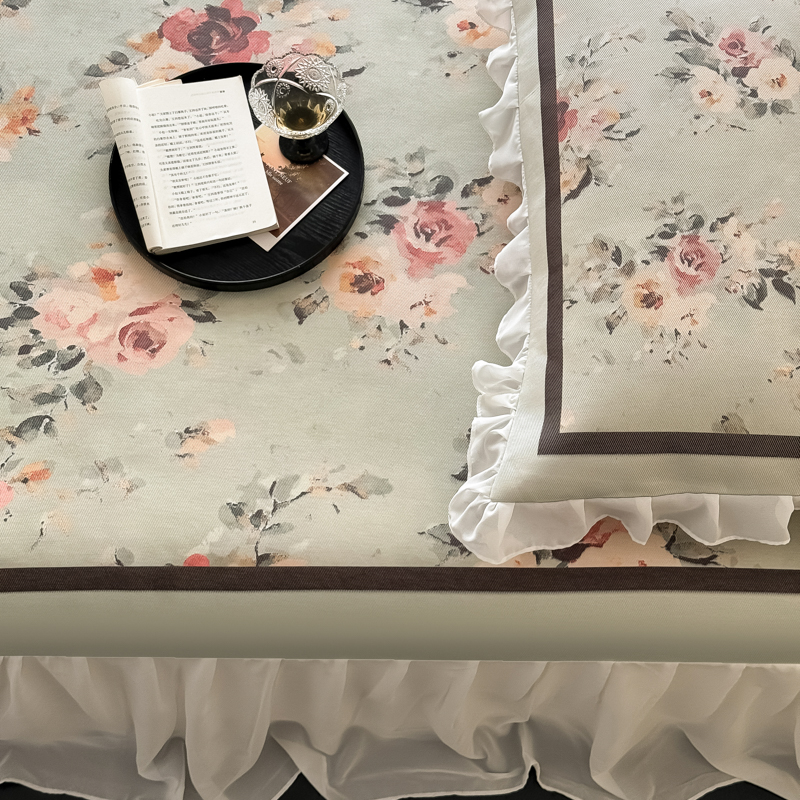 商品名称:懒猫家纺 2025春夏新款高精密800D数码印花冰丝雪纺床裙款凉席 流年