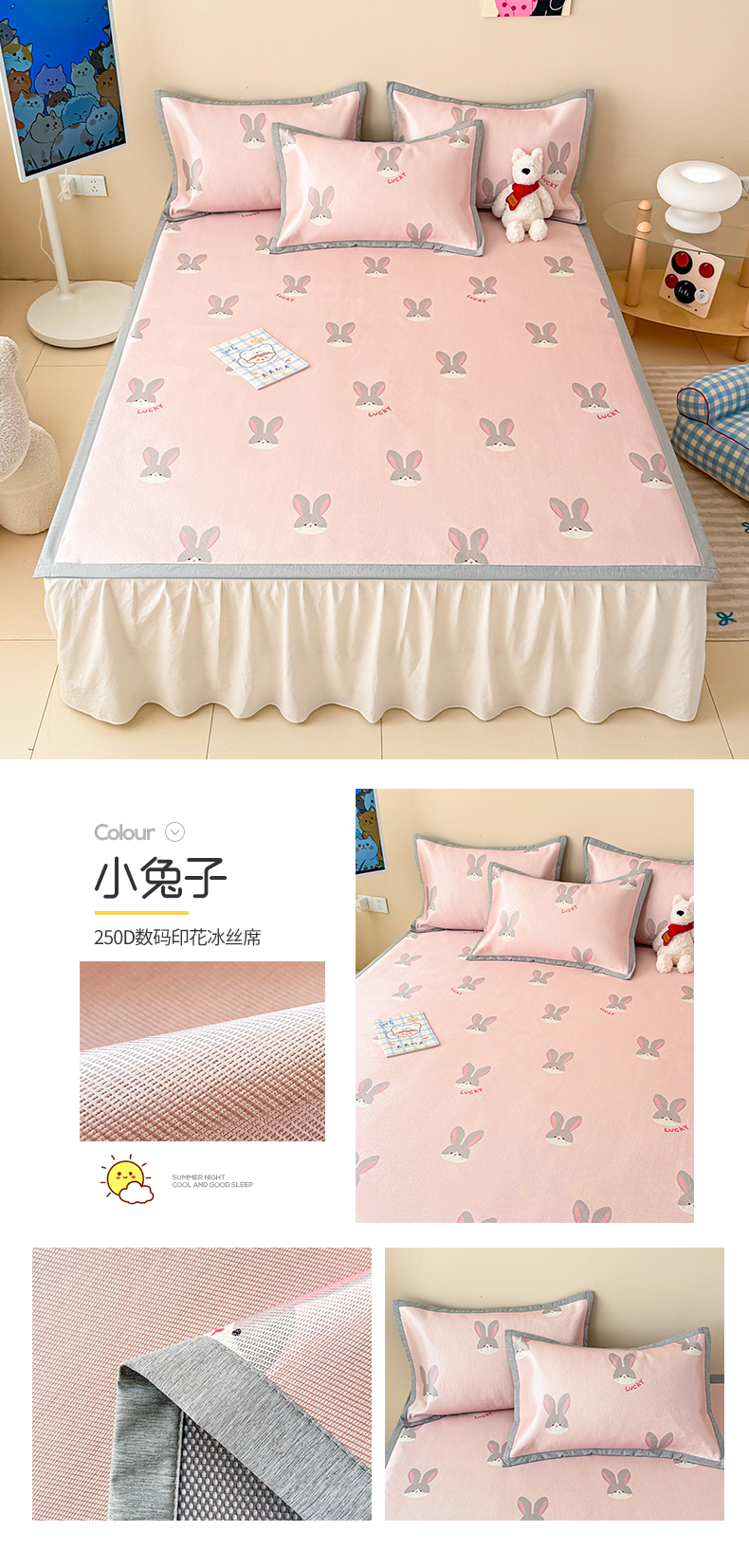 商品名称:懒猫家纺 2025春夏新款250D数码印花冰丝席凉席席子 小兔子