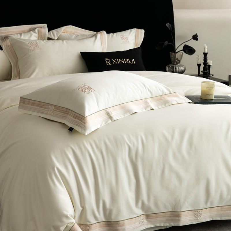 商品名称:馨蕊家居 2025新款100s高奢典藏简约全棉系列四件套-棉罗莎 棉罗莎-月光白